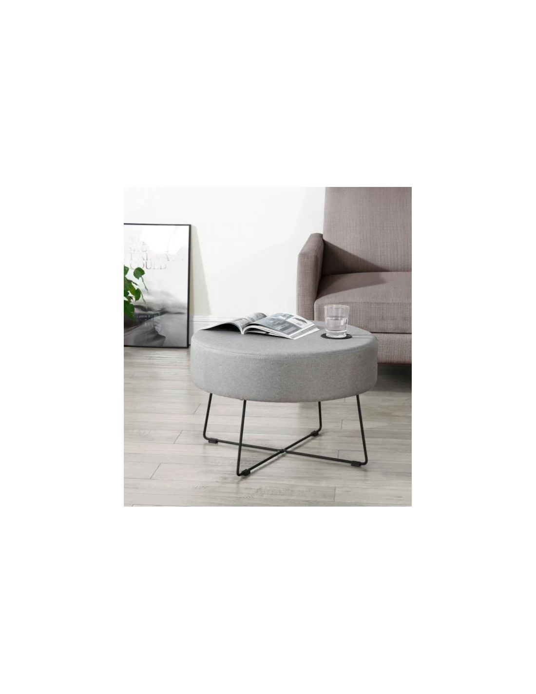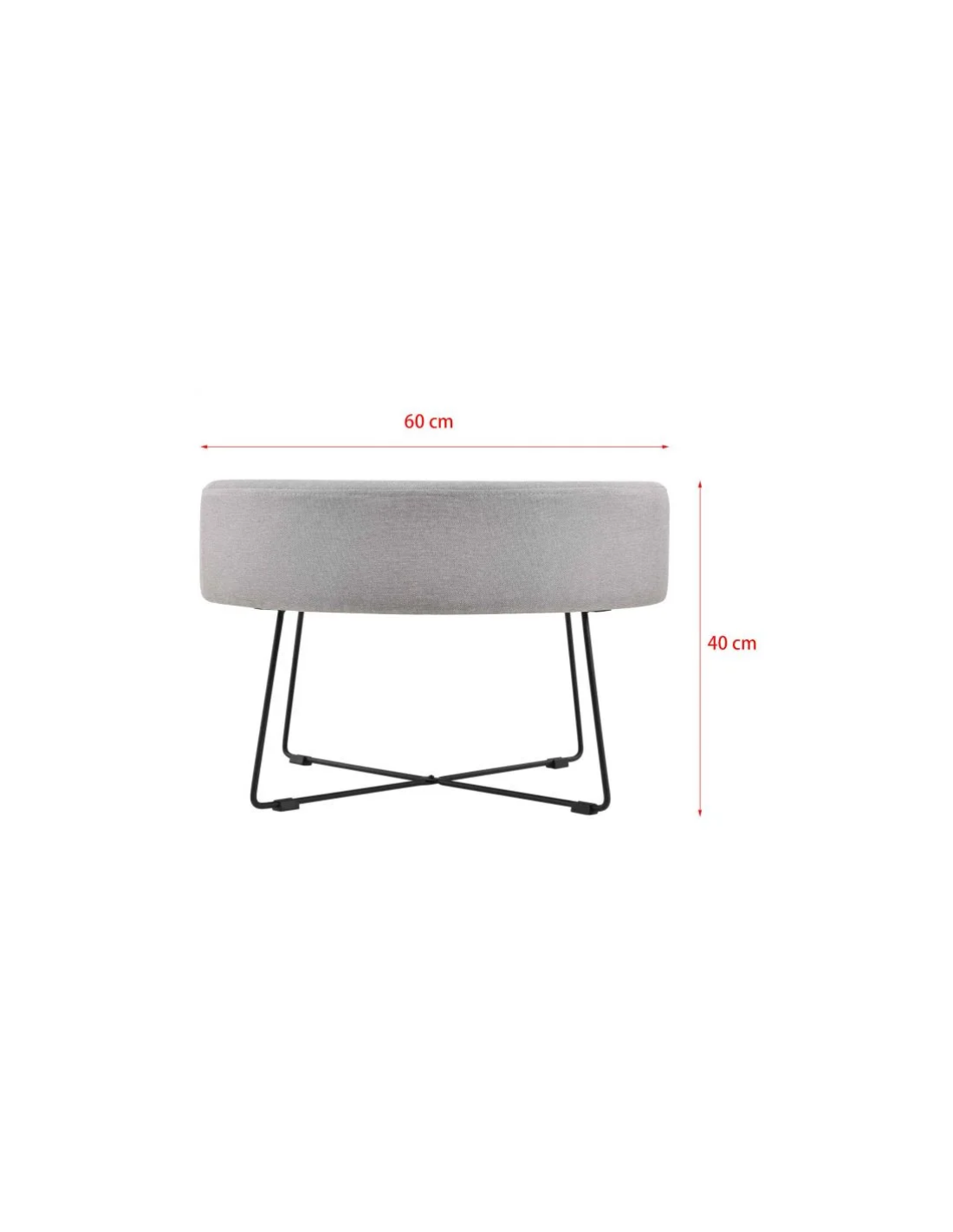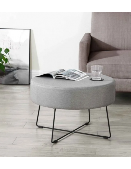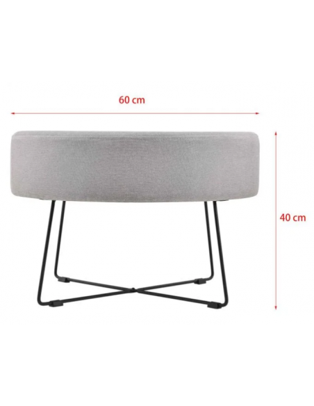 Sofabord udført i et design af sortlakeret metal og grå polyster med skumfyld. Bordet måler 40 cm i højden og 60 cm i diameter.
