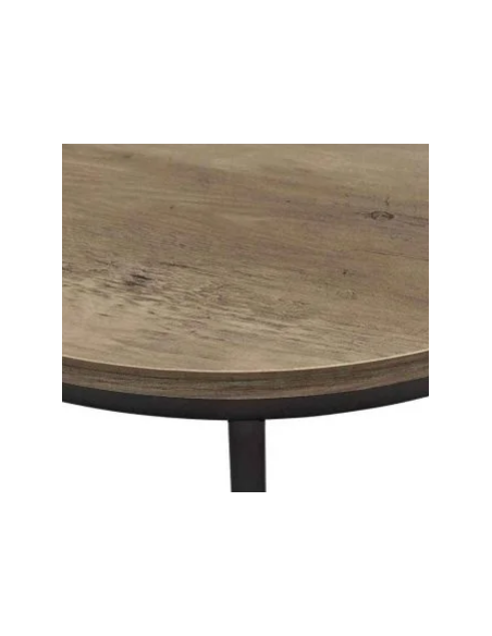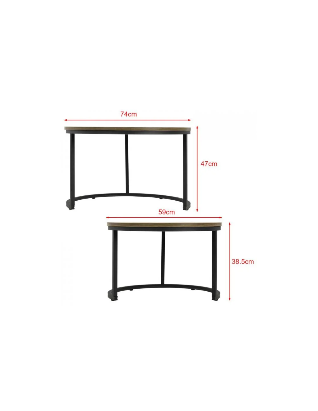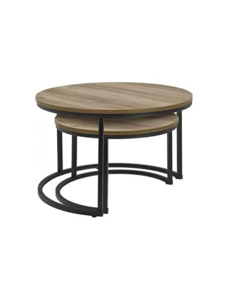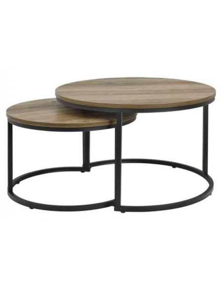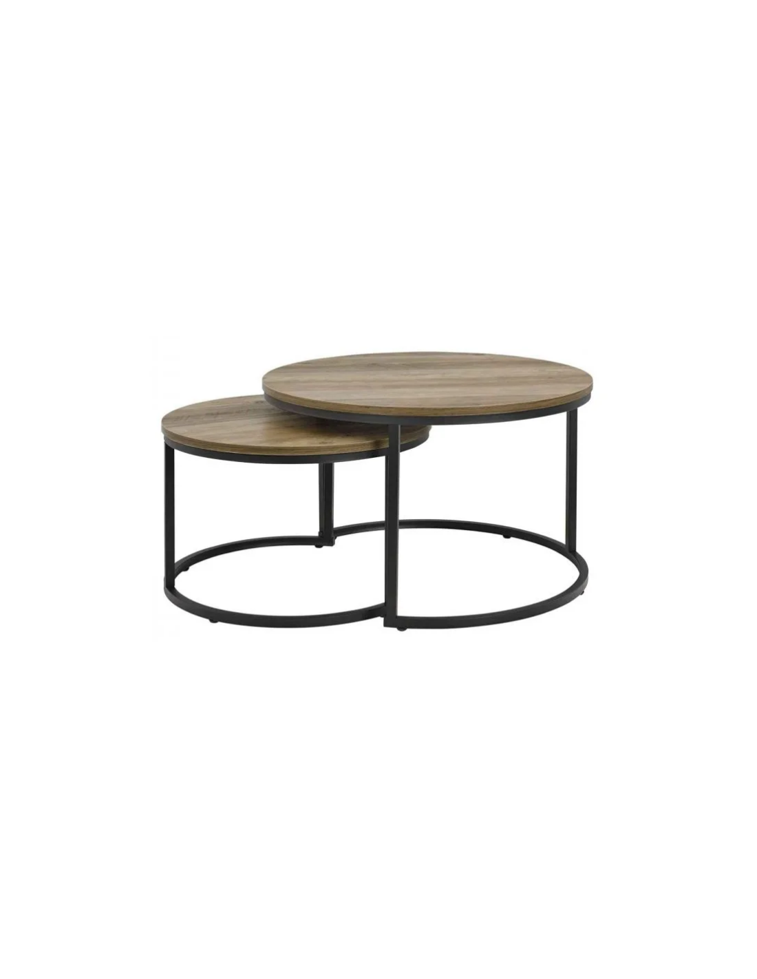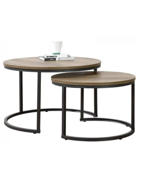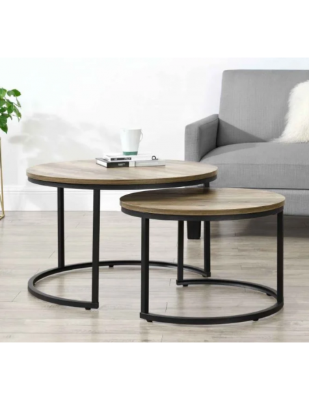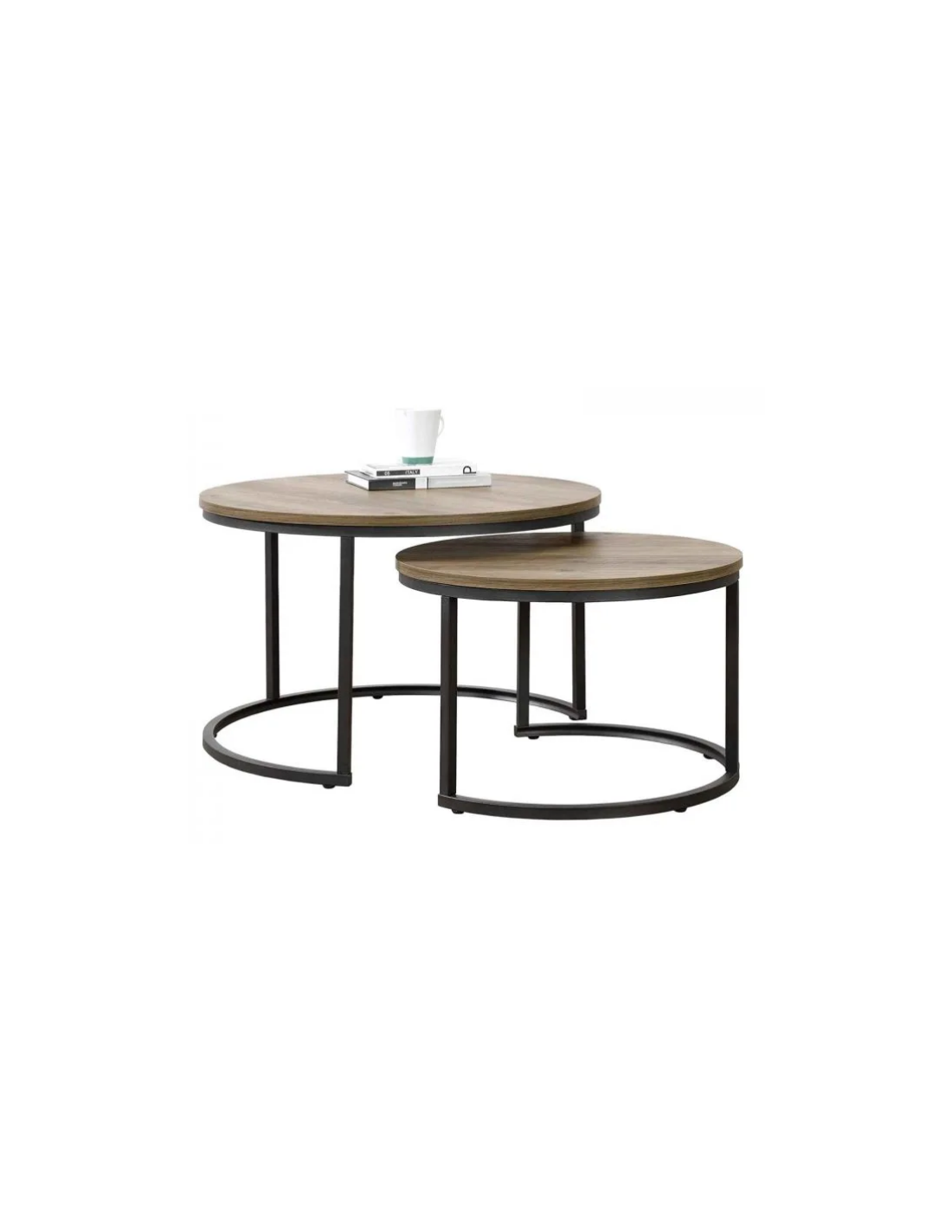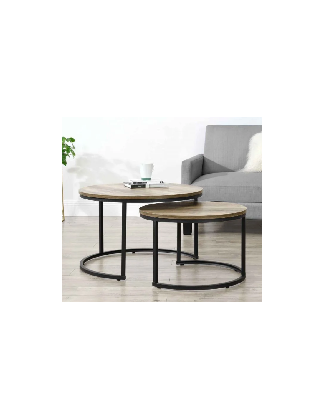 Sæt med 2 sofaborde, udført i et design af metal og møbelplade. Sofabordene måler 38,5 + 47 cm i højden og 59 + 74 cm i diameter.