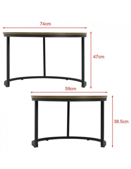 Sæt med 2 sofaborde i metal og møbelplade H38,5 - 47 cm - Sort/Natur