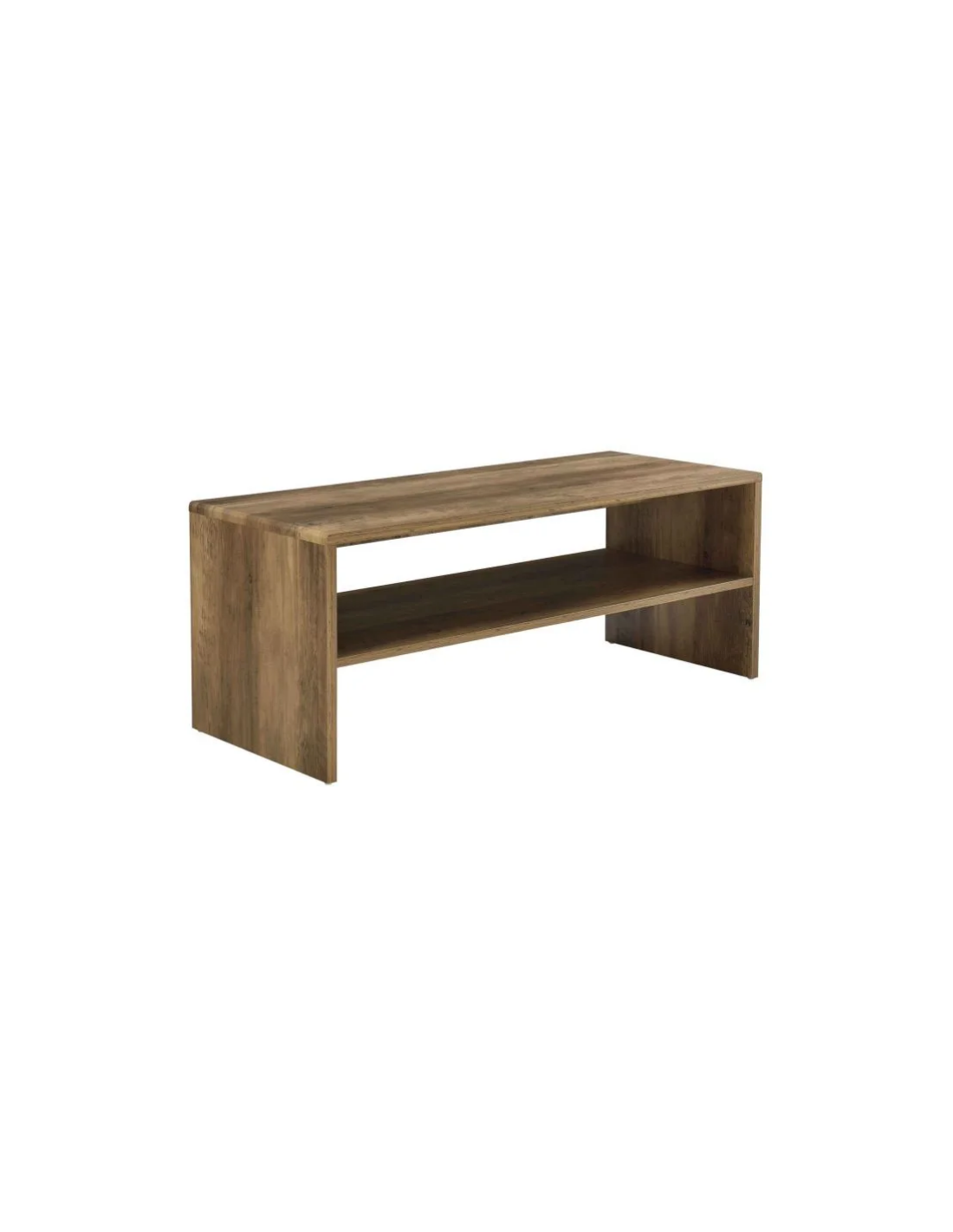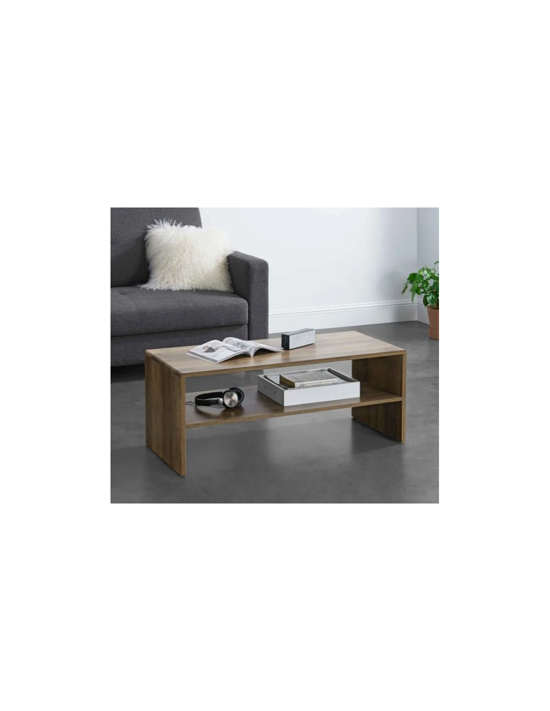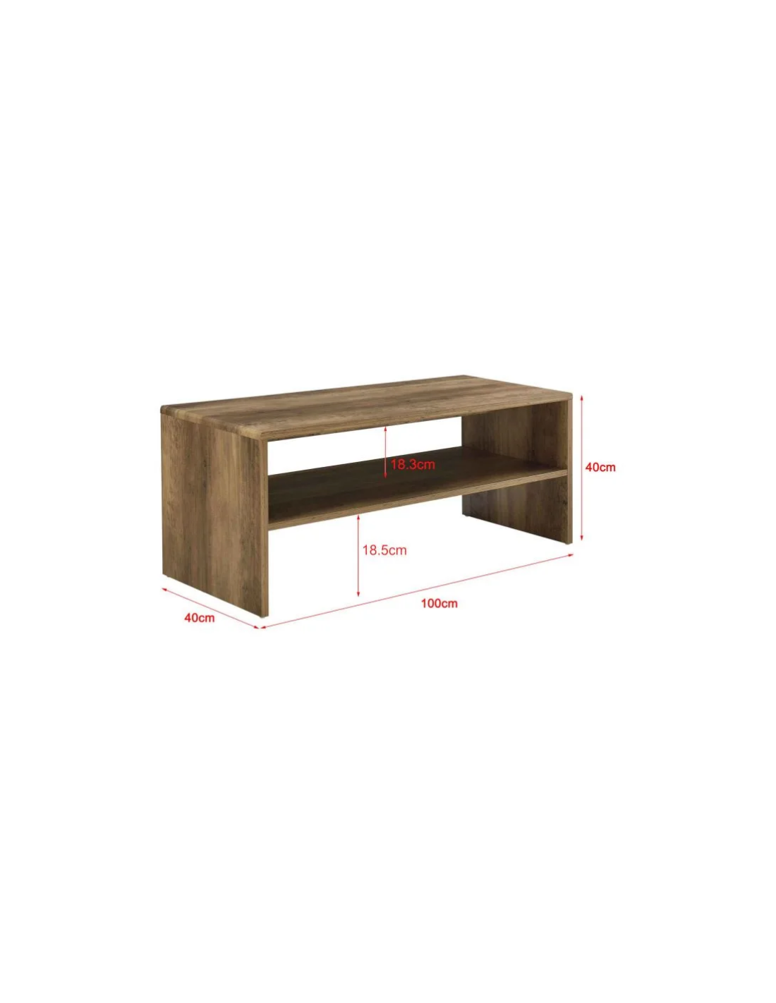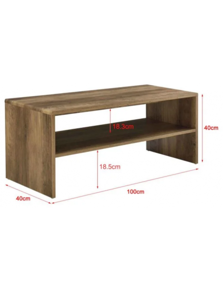 Sofabord udført i et design af brun møbelplade. Sofabordet måler 40 cm i højden og 100 x 40 cm i bredde og dybde.