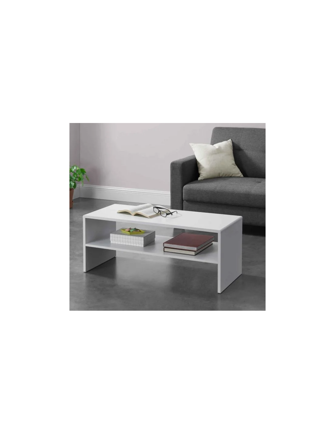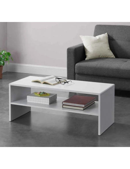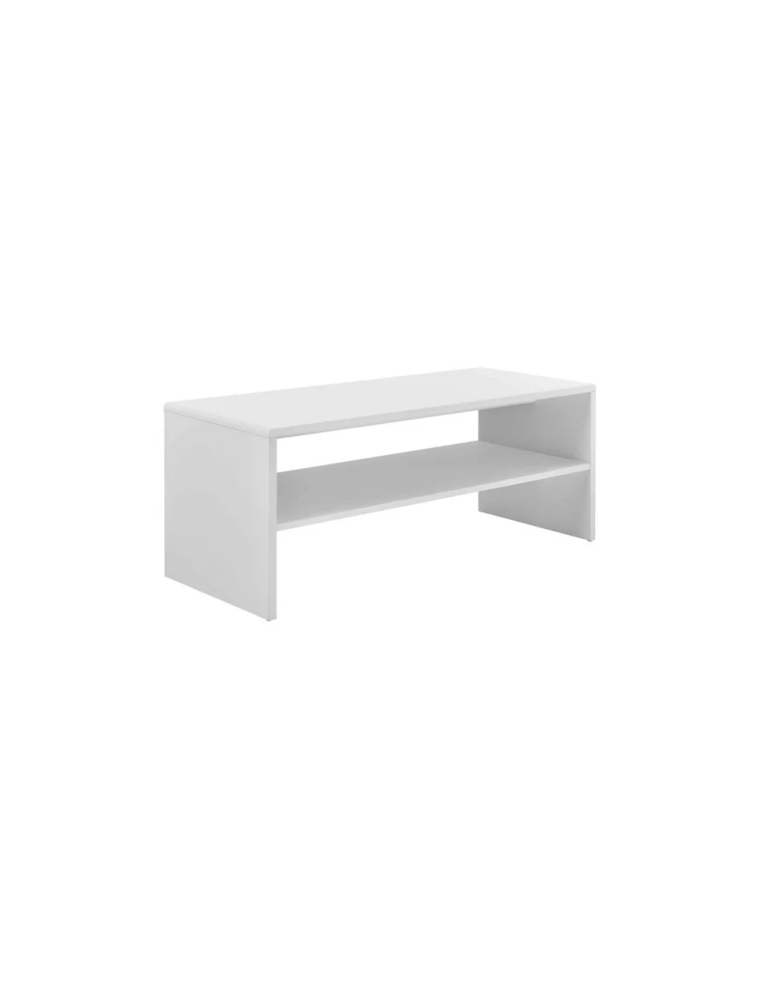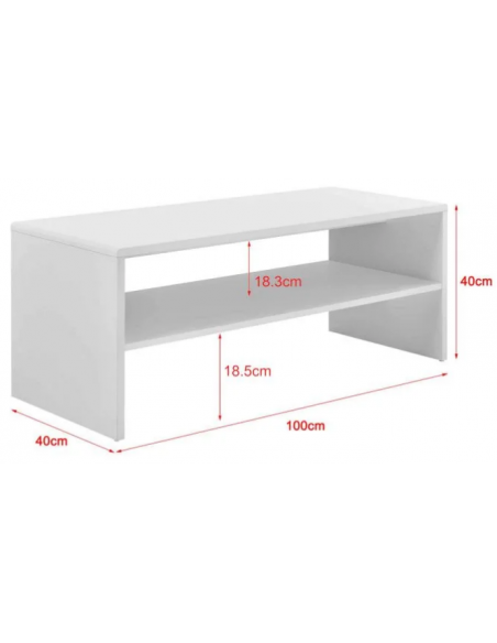 Sofabord udført i et design af hvid møbelplade. Sofabordet måler 40 cm i højden og 100 x 40 cm i bredde og dybde.