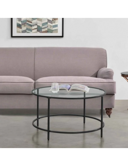 Sofabord i metal og glas H45,5 x Ø84 cm - Sort