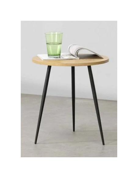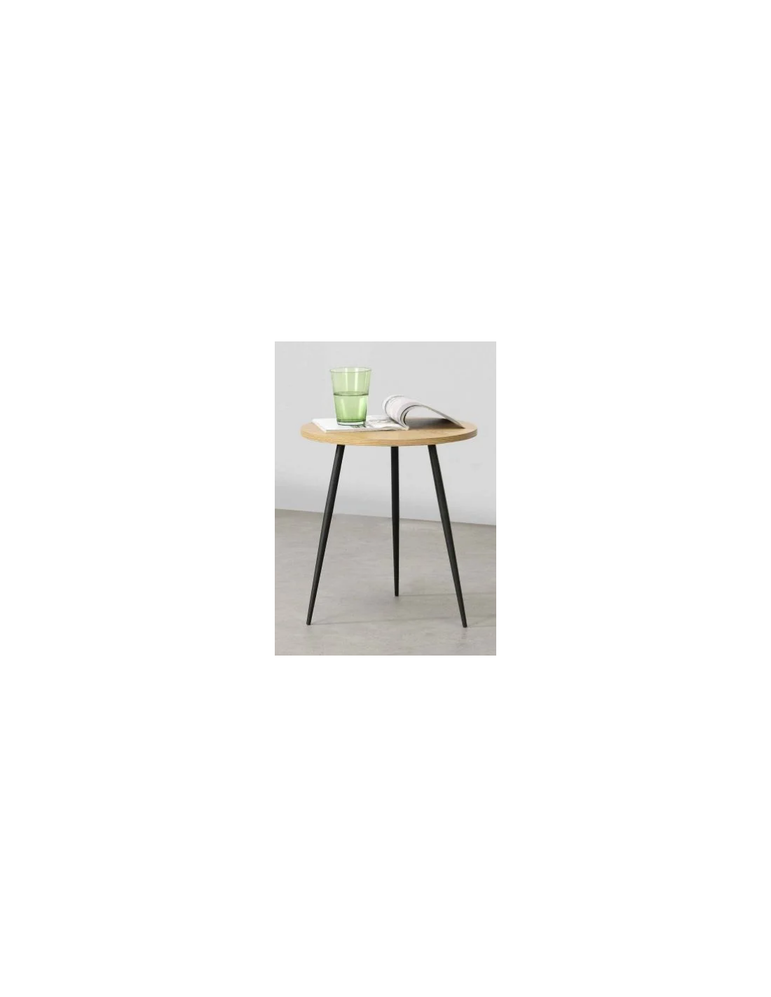 Sofabord i metal og mdf H44 x Ø40 cm - Sort/Natur