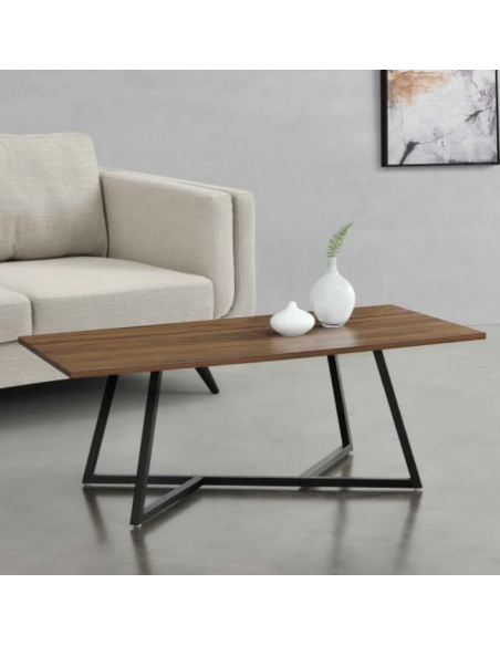 Sofabord i metal og mdf H45 x B120 x D60 cm - Sort/Brun