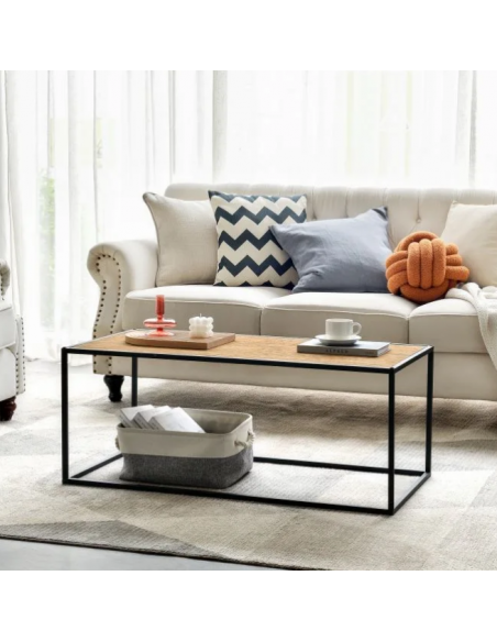 Sofabord i metal og møbelplade H40 x B100 x D50 cm - Sort/Natur