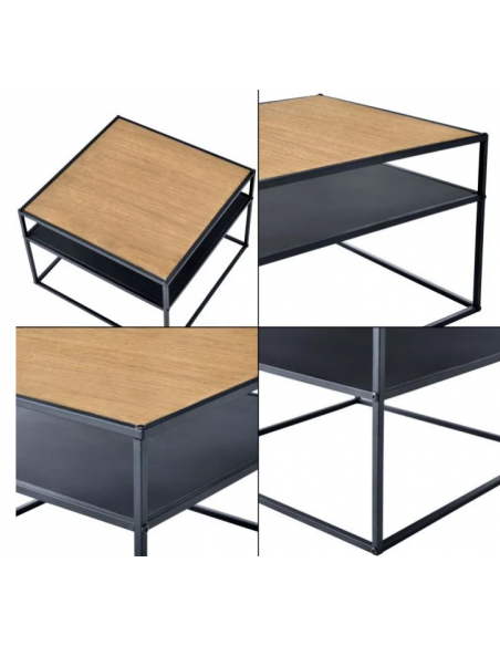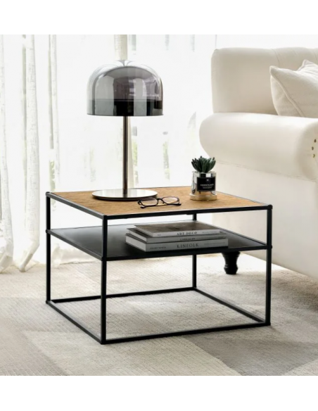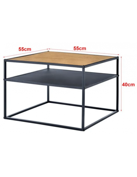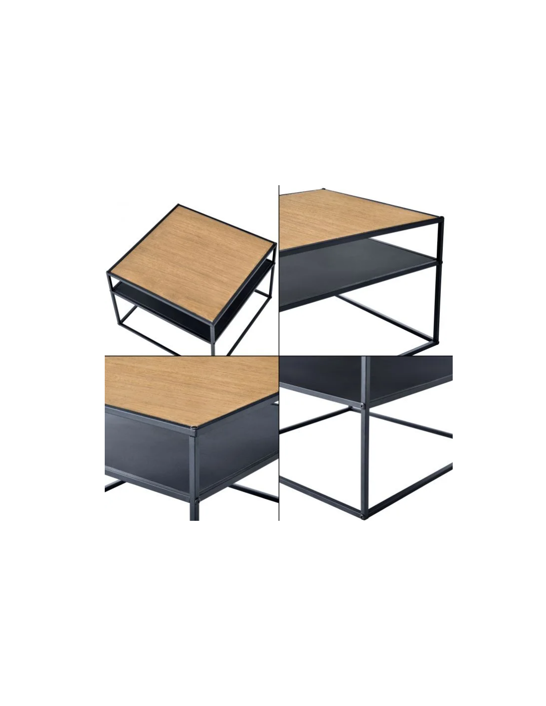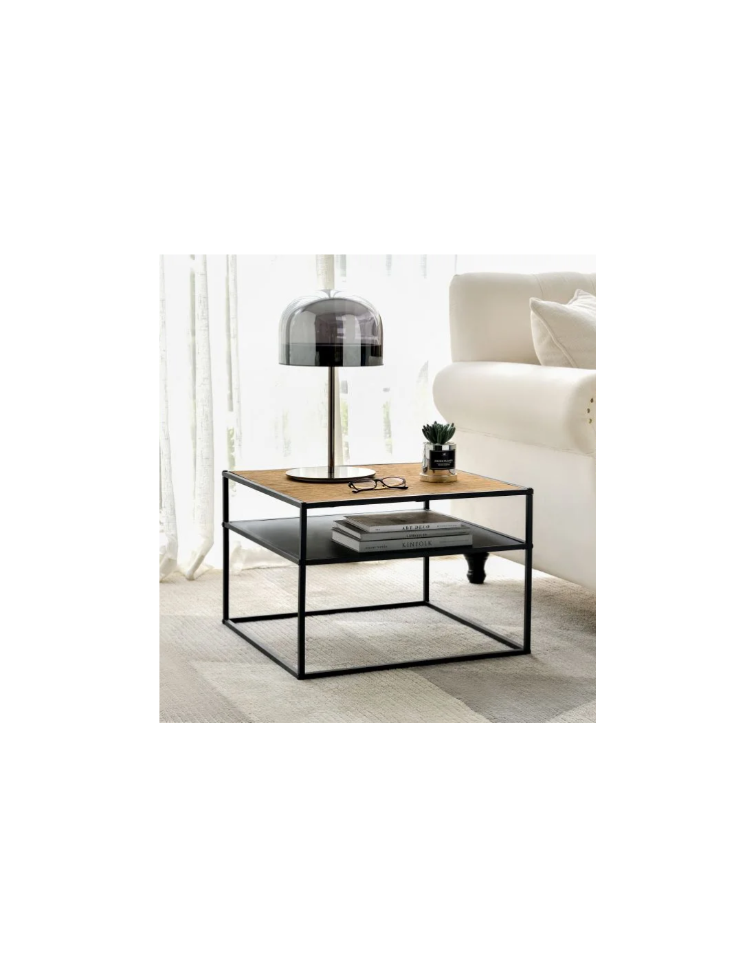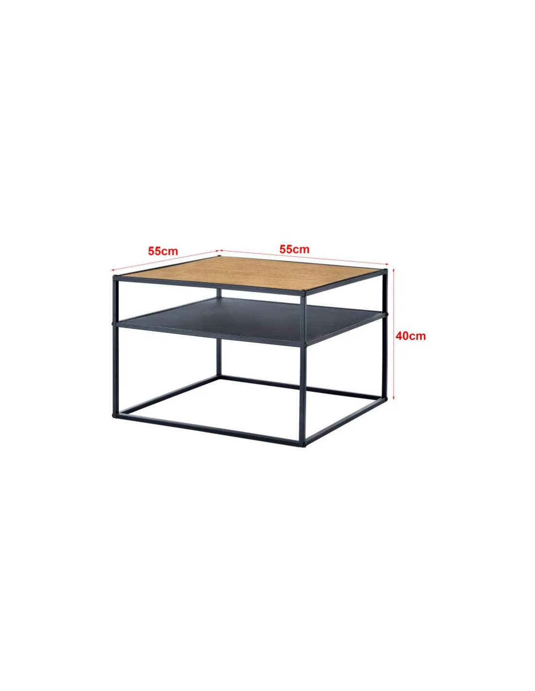 Sofabord i metal og møbelplade H40 x B55 x D55 cm - Sort/Natur