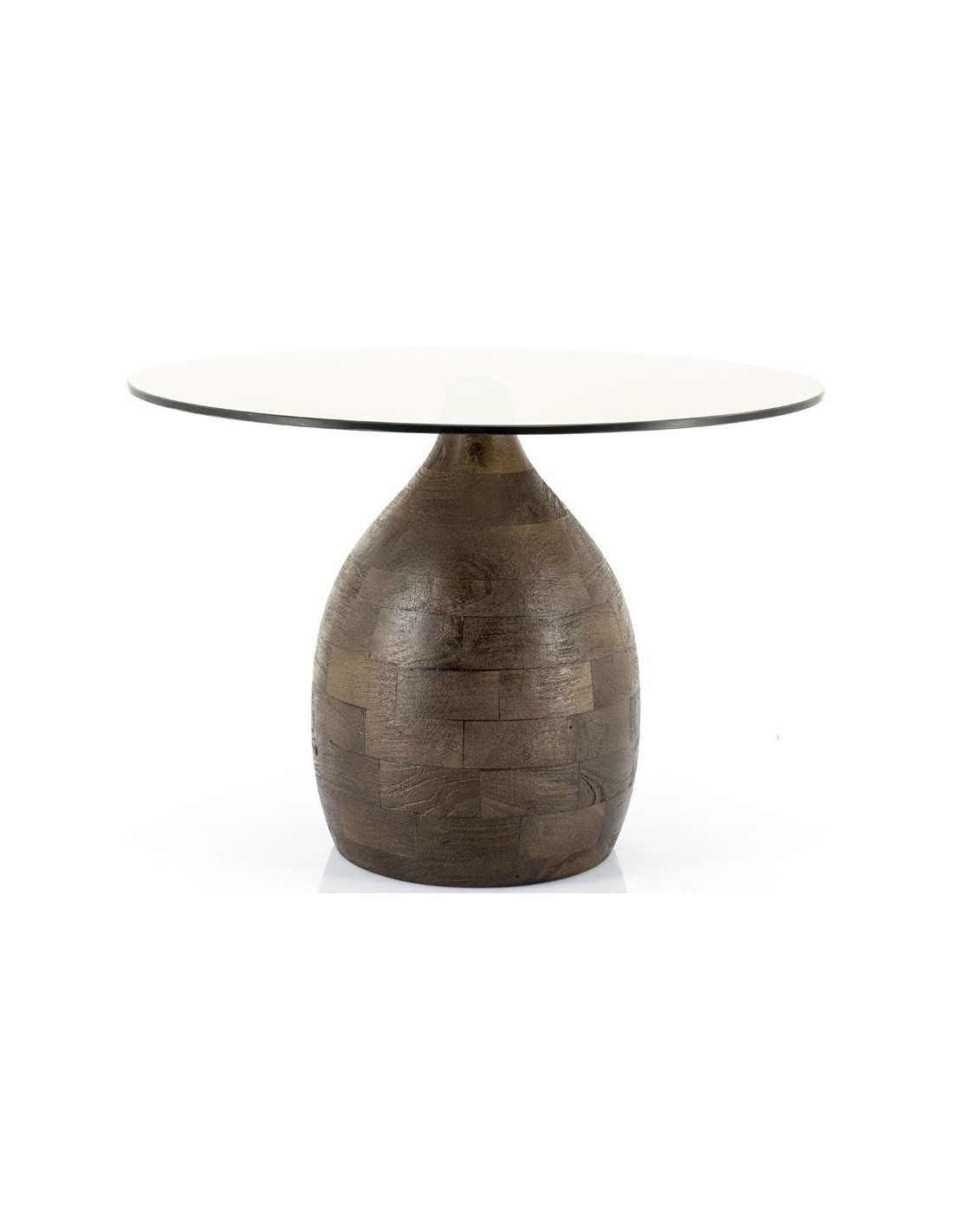 Bond sofabord i mangotræ og glas H42 x Ø60 cm - Antik brun/Røget