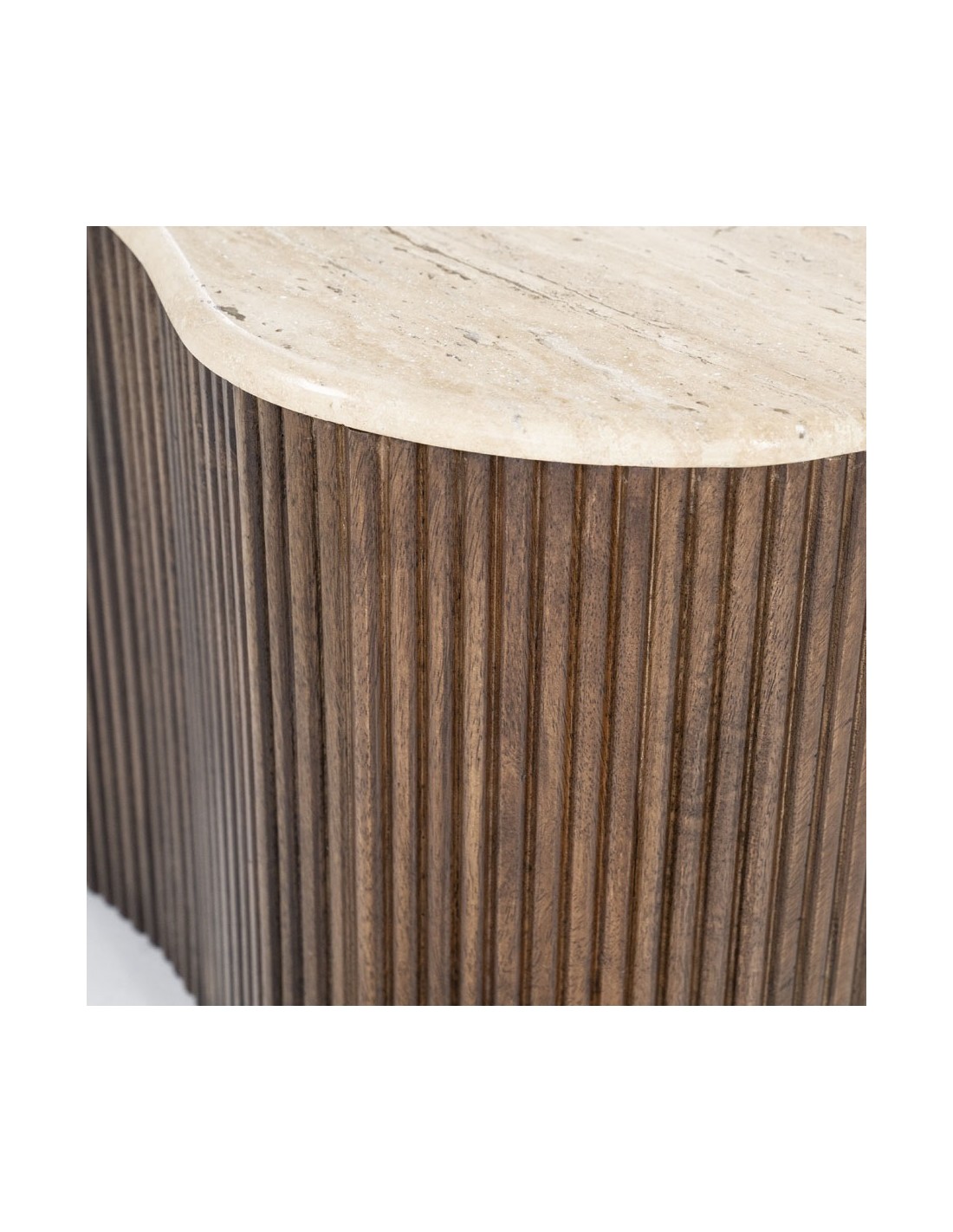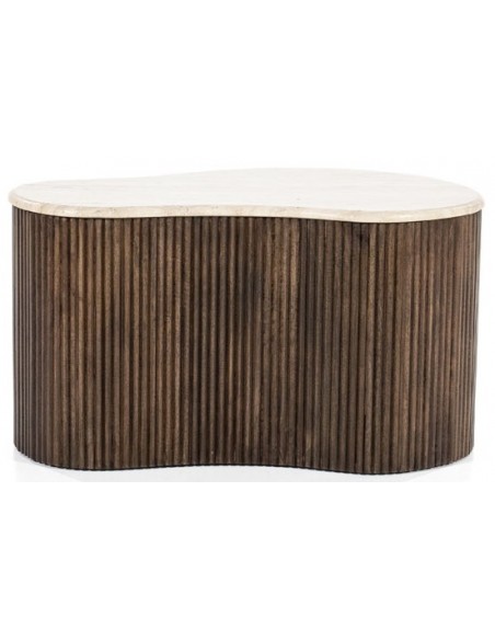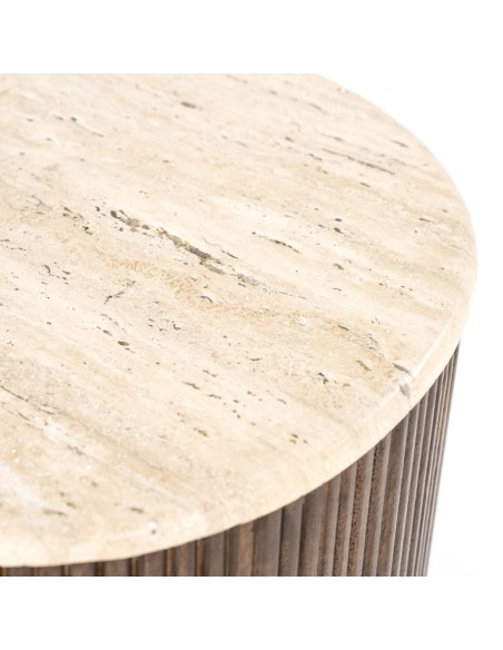 Mari sofabord i travertin og mangotræ H38 x B70 x D47 cm - Brun/Travertin