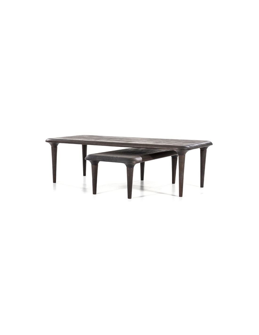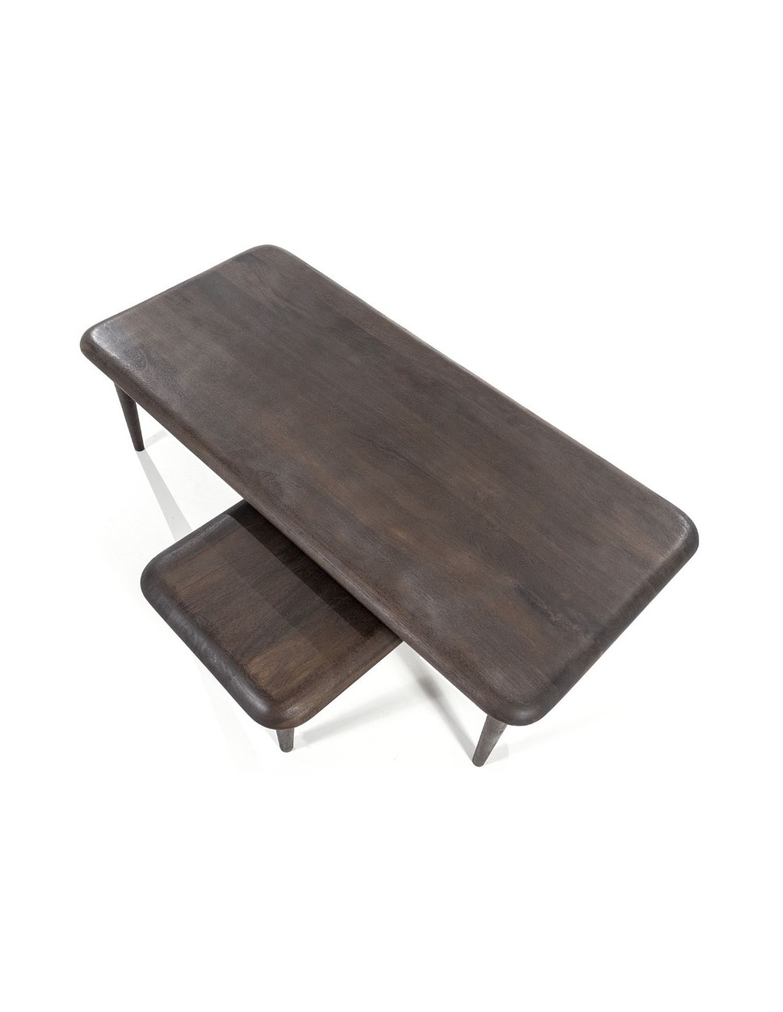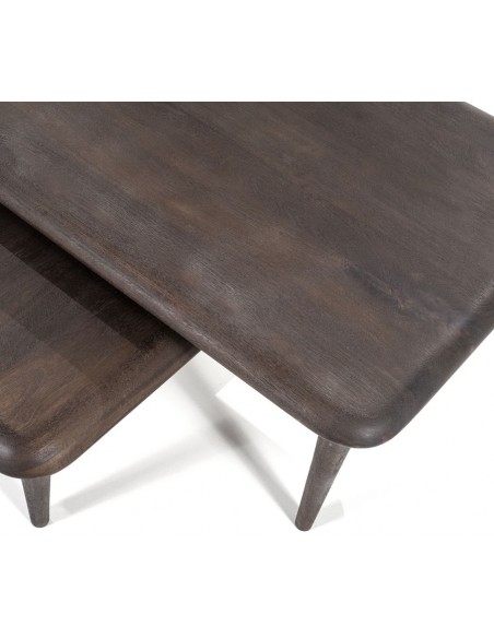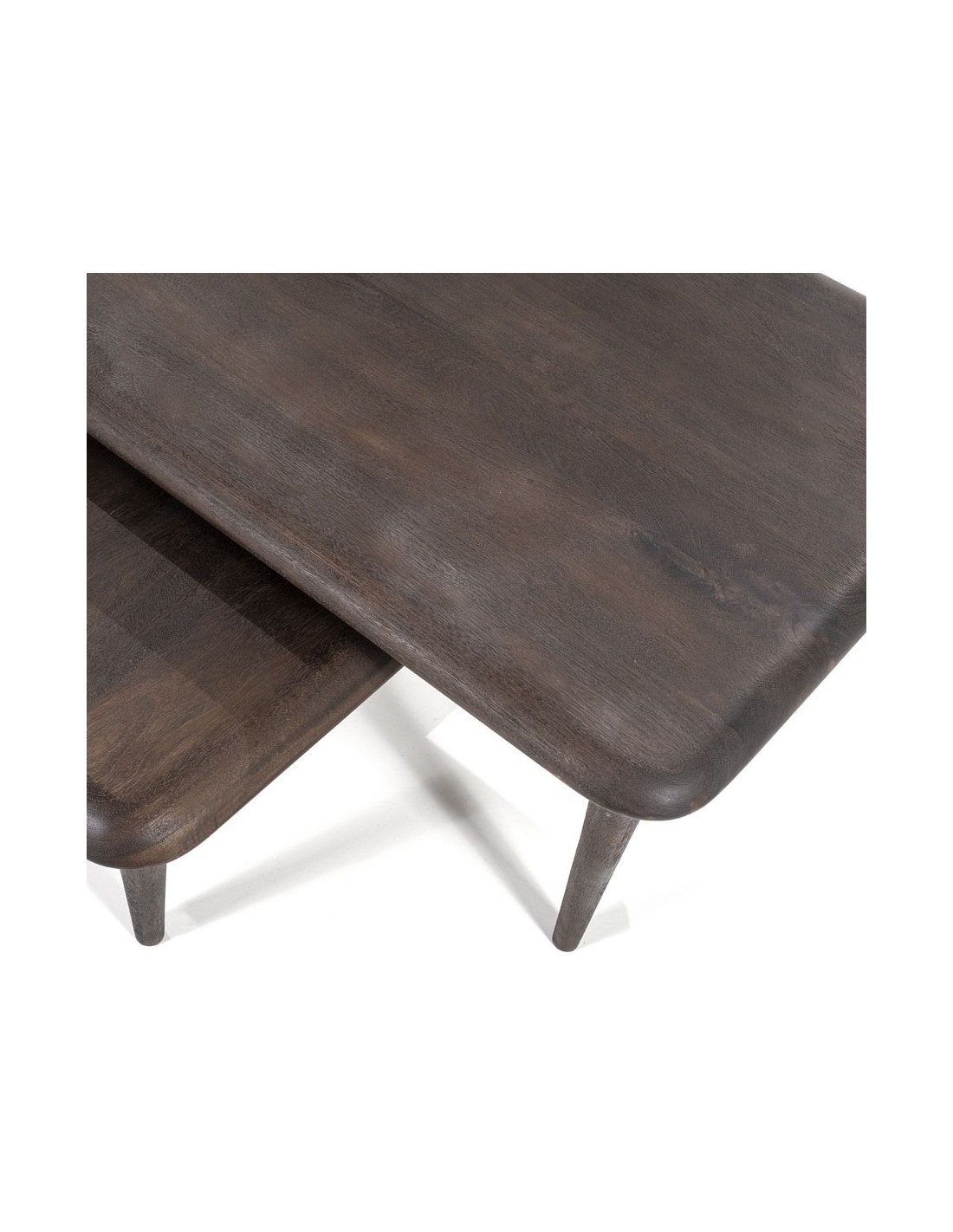 Jiska sofabordssæt udført i et moderne design, fremstillet i brunbejset mangotræ. Sofabordene måler 30 og 38 cm i højden og 90 og 130 cm i bredde og 45 og 60 cm i dybden.