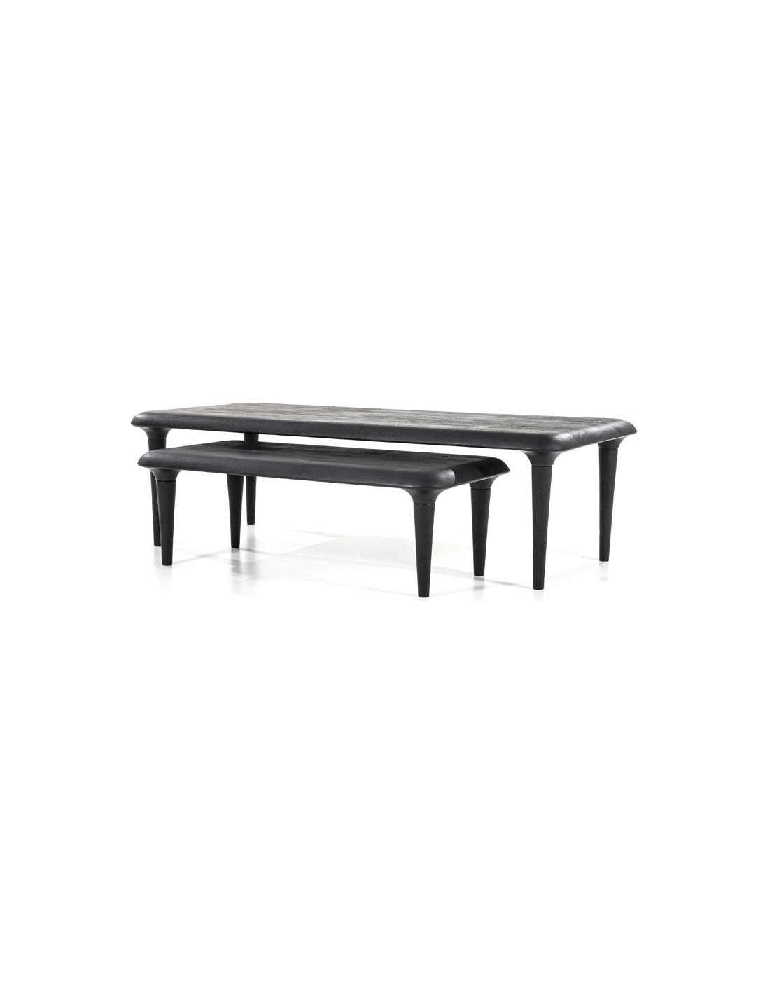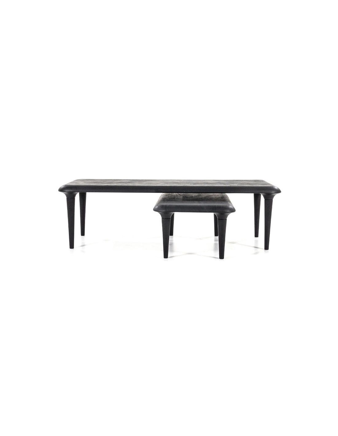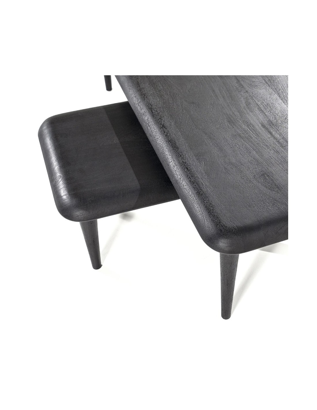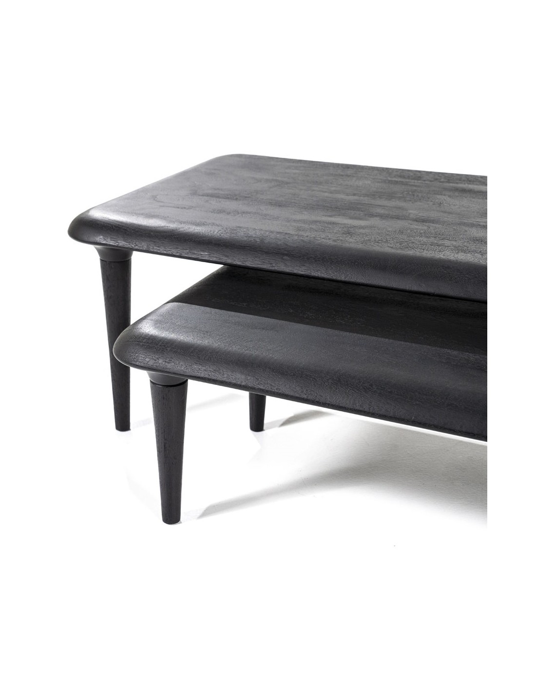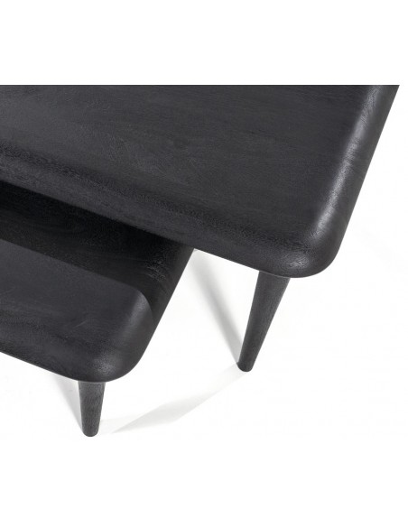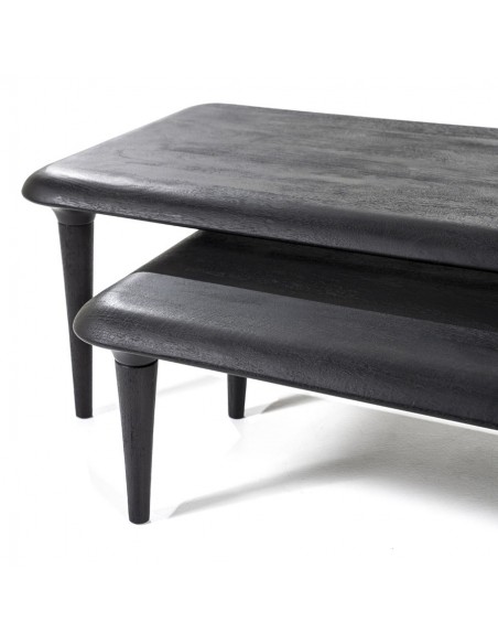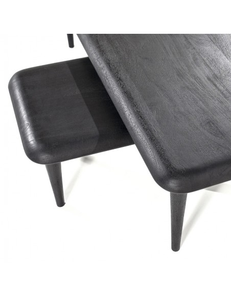 Jiska sofabordssæt udført i et moderne design, fremstillet i sortbejset mangotræ. Sofabordene måler 30 og 38 cm i højden og 90 og 130 cm i bredde og 45 og 60 cm i dybden.
