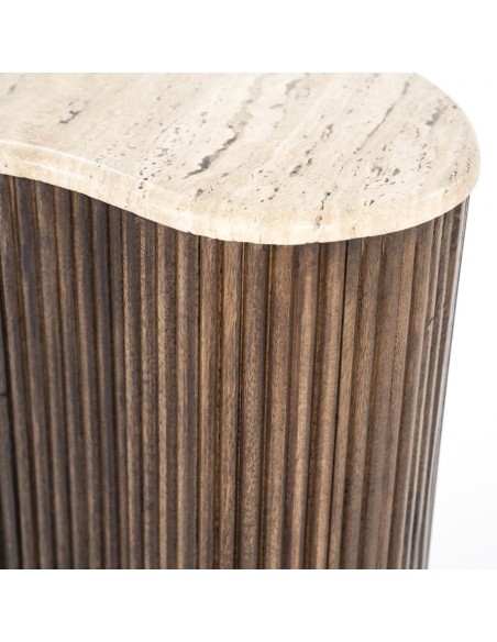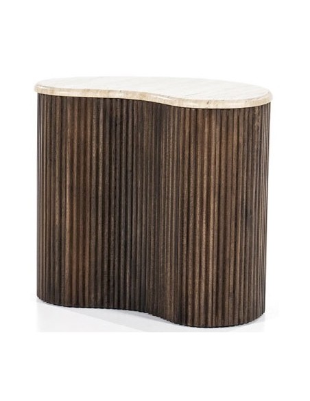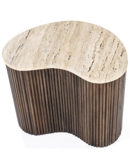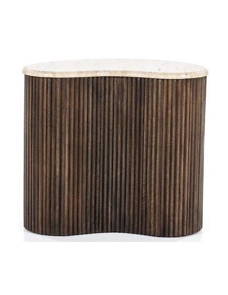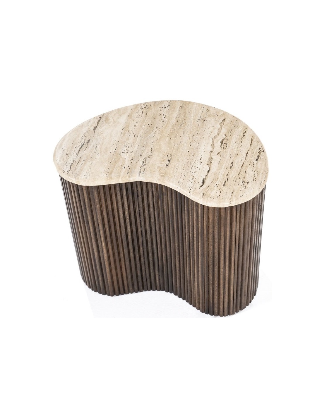 Mari sofabord i travertin og mangotræ H44 x B50 x D33 cm - Brun/Travertin