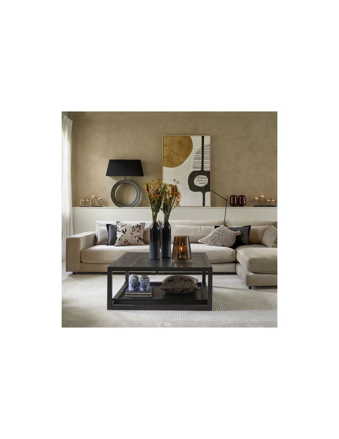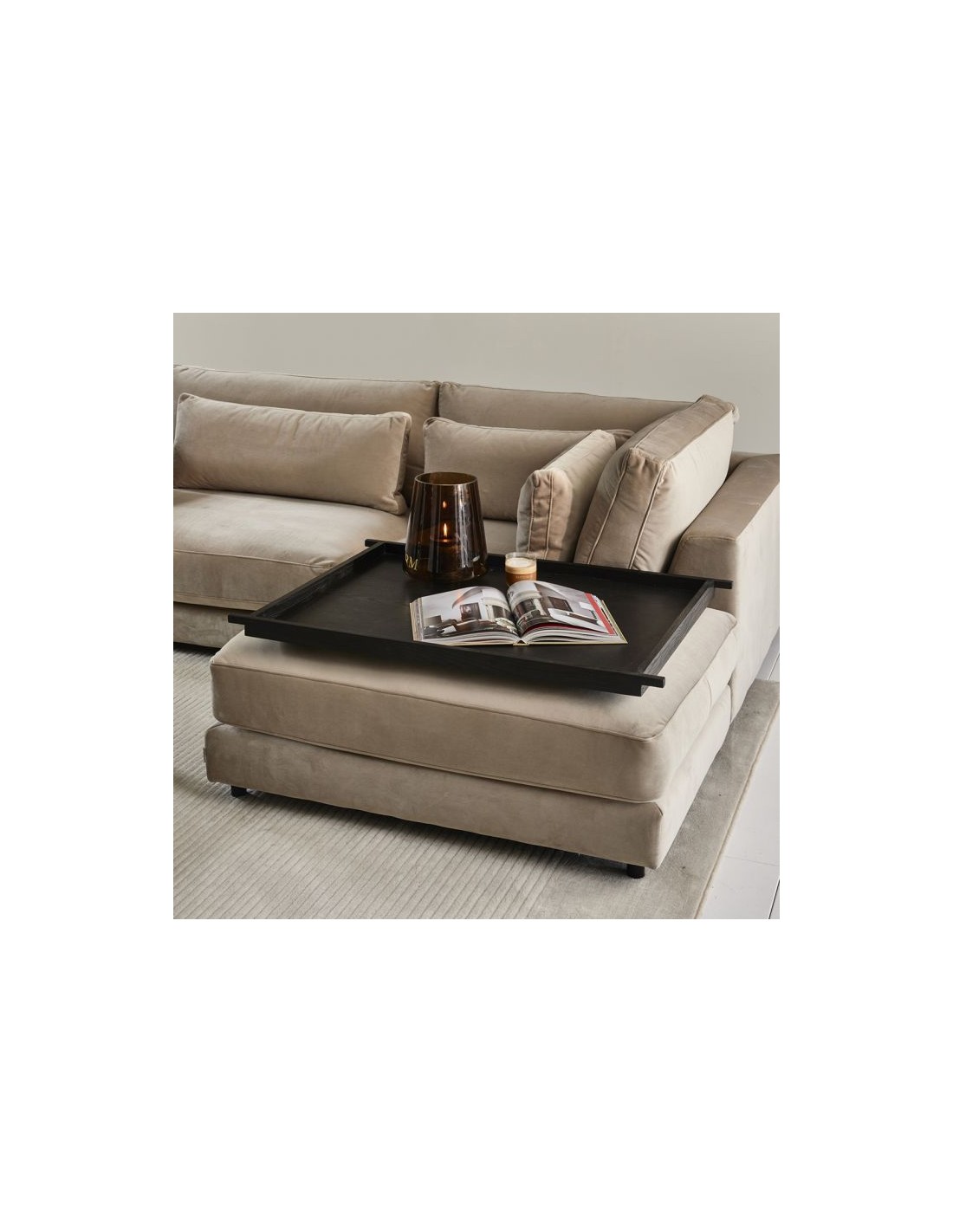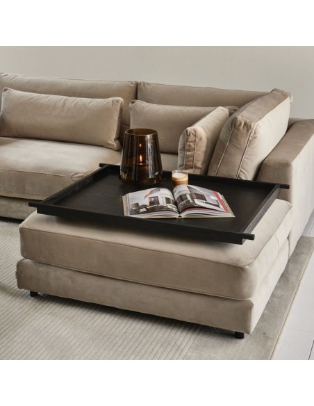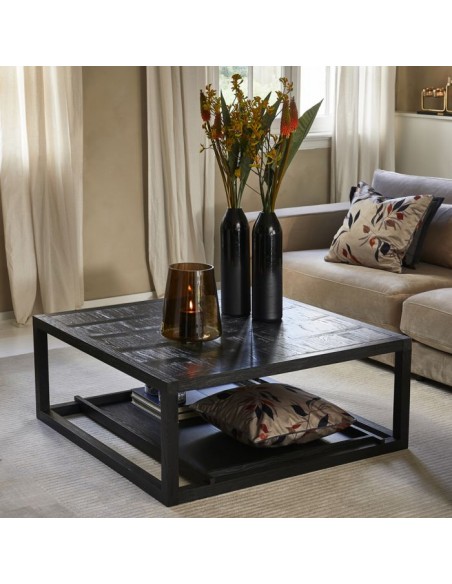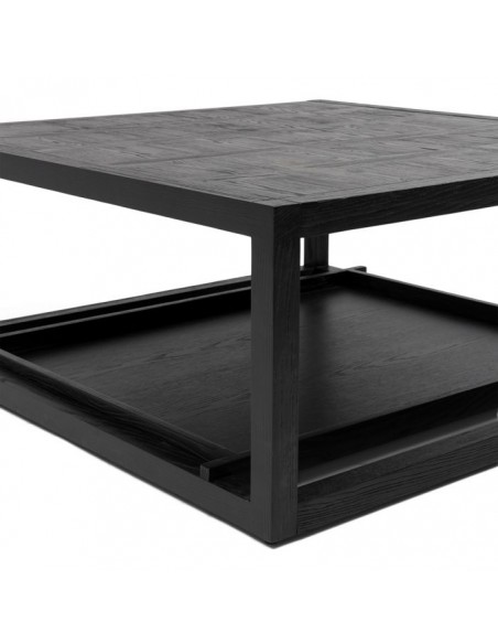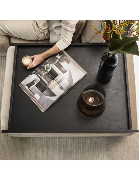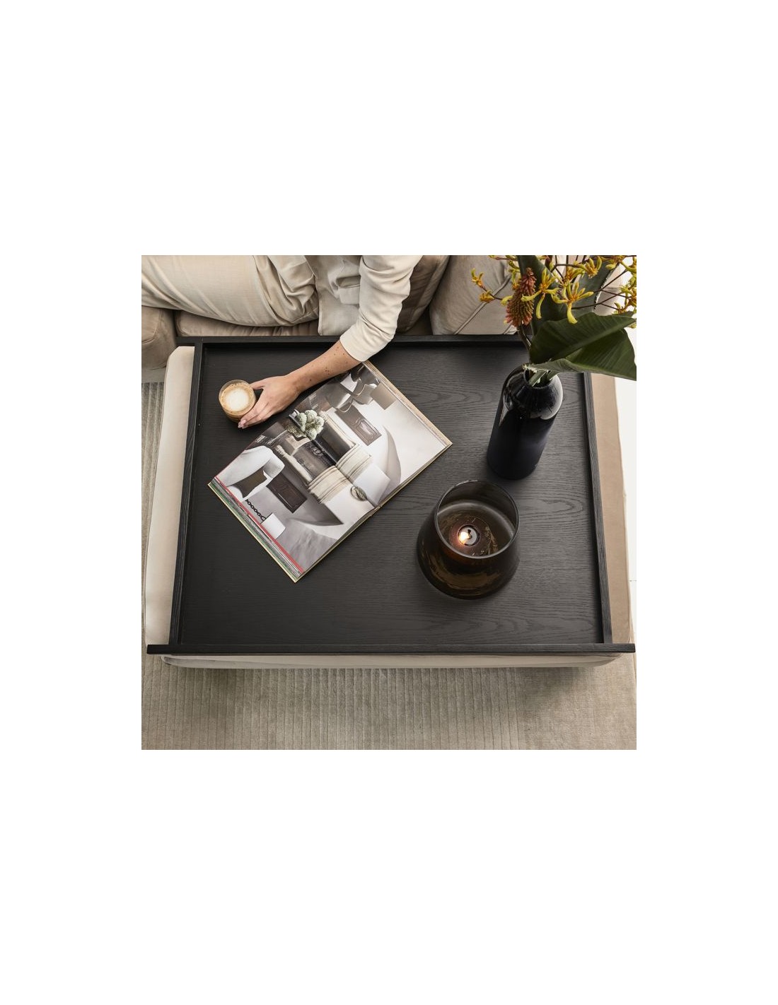 Riviera Maison sofabord, udført i et design af sortlakeret ask træ, og med aftagelig bakke. Sofabordet måler 45 cm i højden og 110 x 110 cm i bredde og dybde.