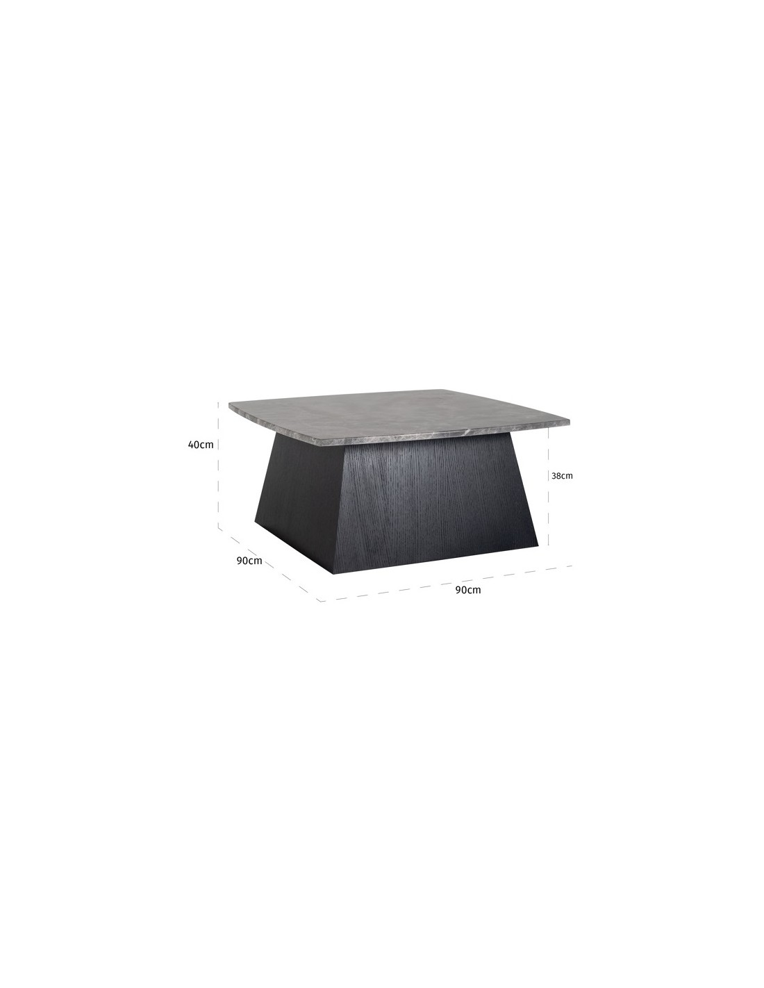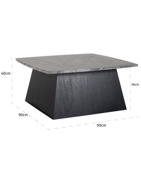 Geisha sofabord i egetræ og marmor 90 x 90 cm - Sort/Grå marmor