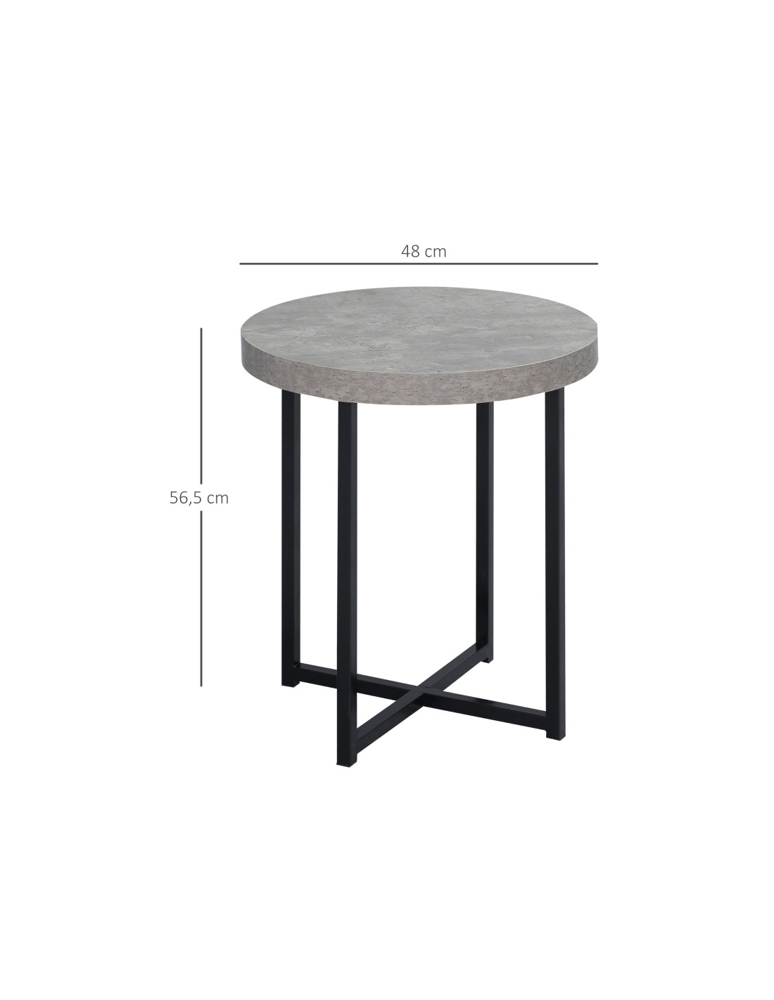 Sidebord i metal og MDF H56,5 x Ø48 cm - Sort/Betongrå