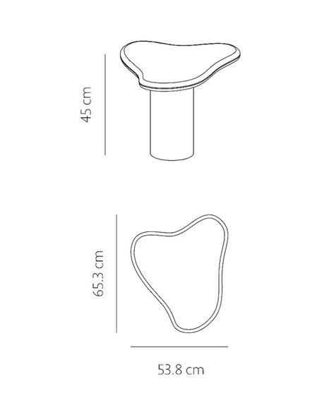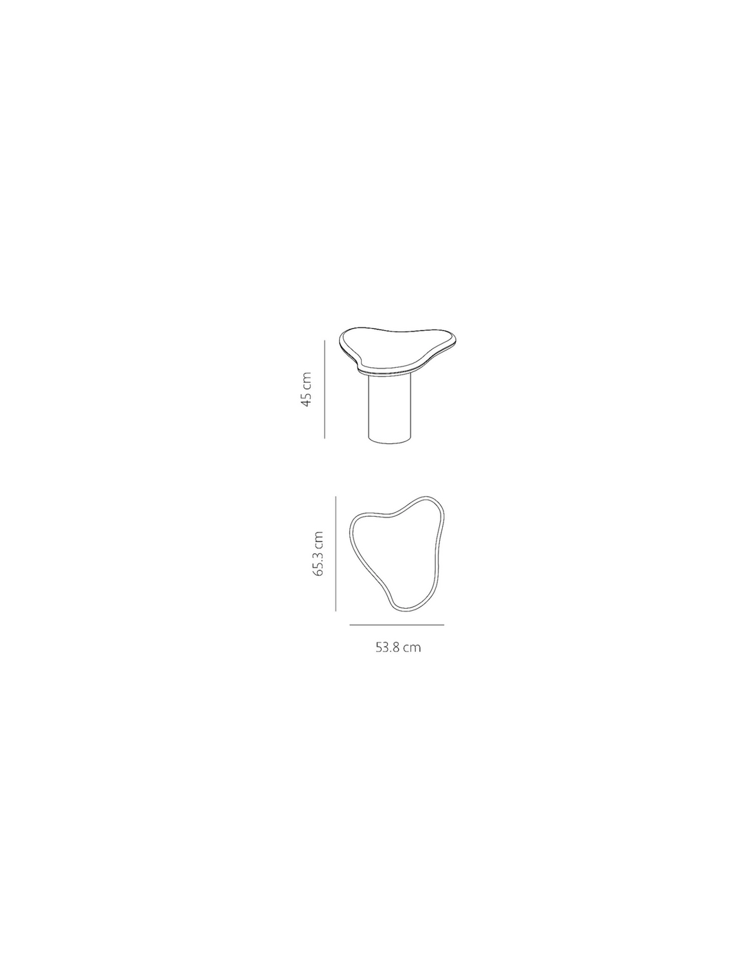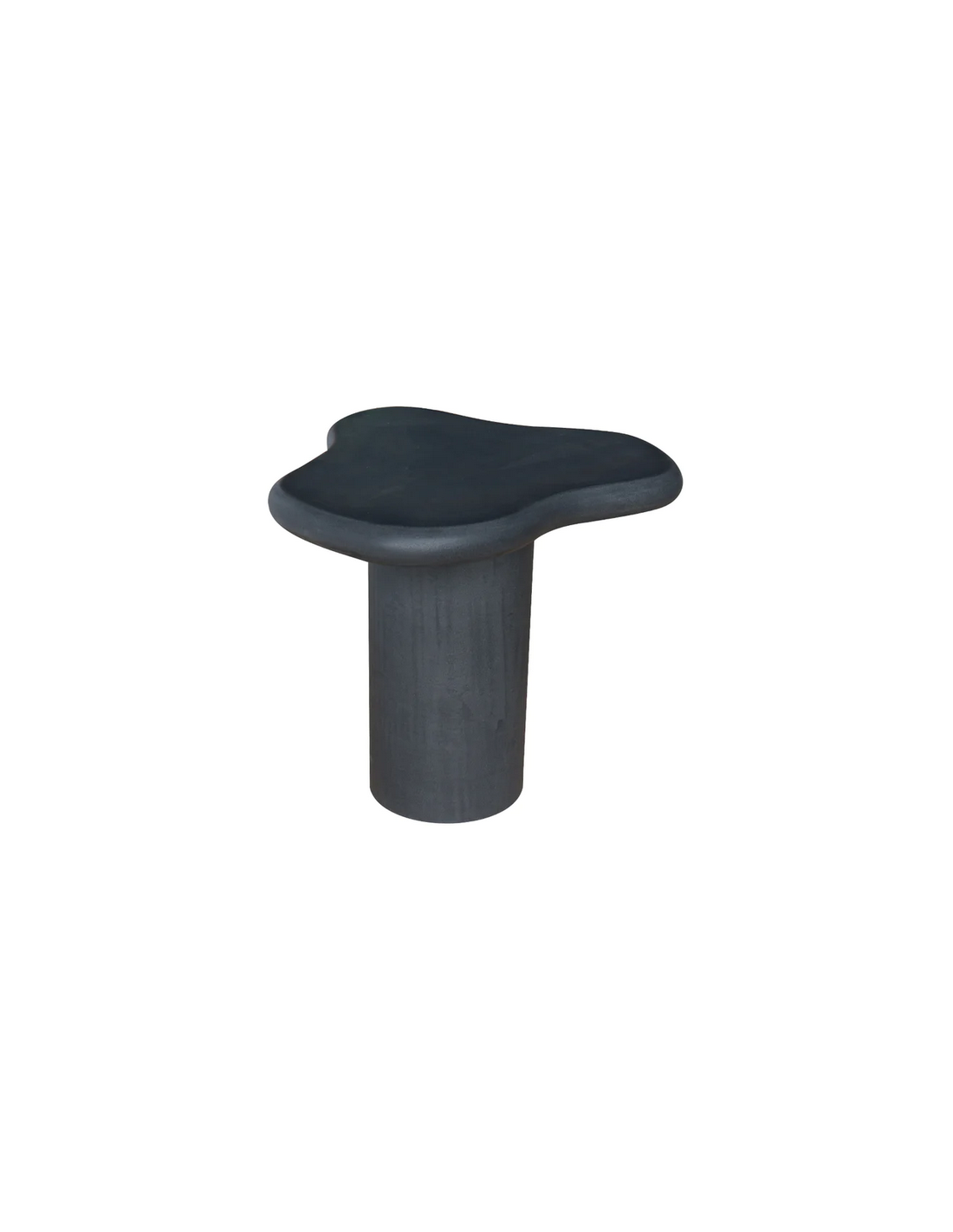 Sofabord udført i et moderne design af sort mortex. Sofabordet måler 45 cm i højden og 53,8 x 65,3 cm i bredde og dybde. Mortex er en blanding af mineraler og beton, der gør det muligt at fremstille et bord med organiske former, samtidig med at overfladen er gjort vandafvisende.