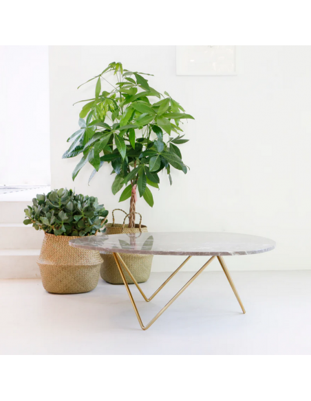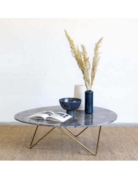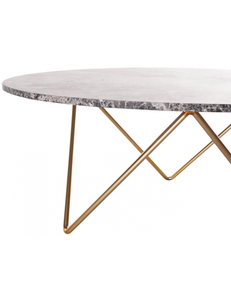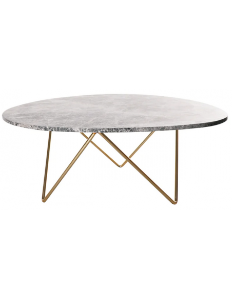Richard sofabord i metal og marmor H40 x B100 x D80 cm - Guld/Grå marmor