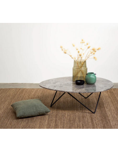 Richard sofabord i metal og marmor H40 x B100 x D80 cm - Sort/Grå marmor