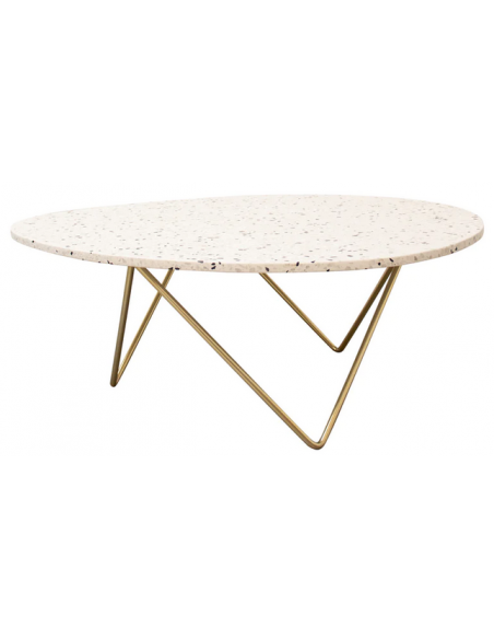 Richard sofabord i metal og terrazzo H40 x B100 x D80 cm - Guld/Hvid terrazzo
