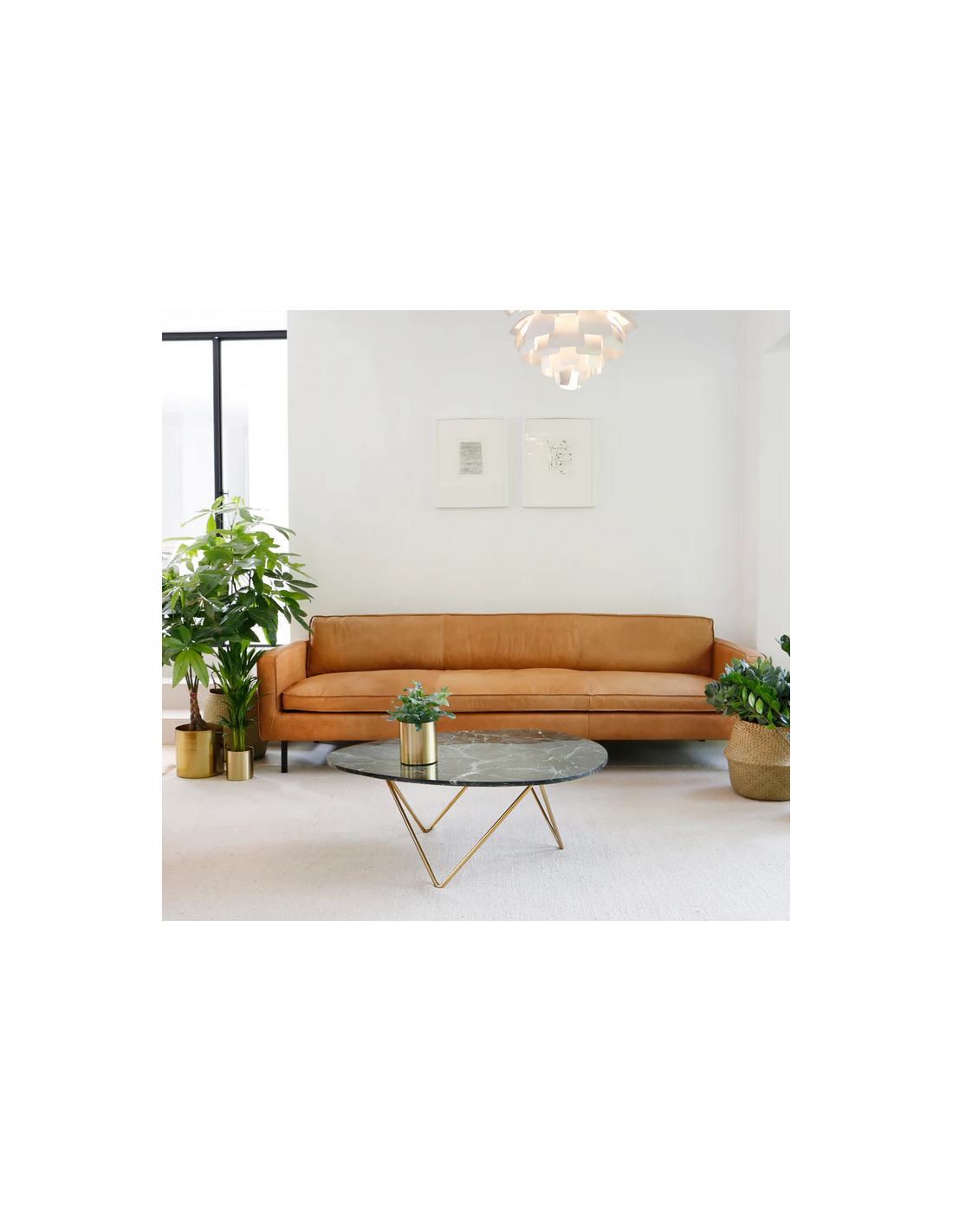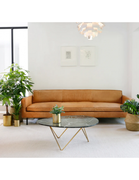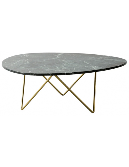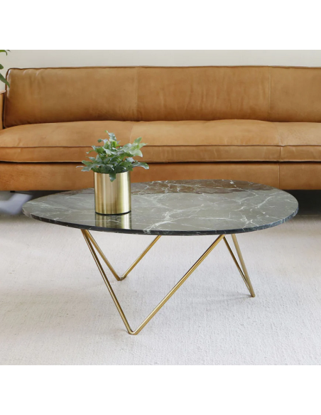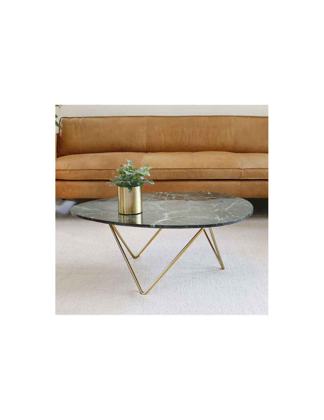 Richard sofabord i metal og marmor H40 x B100 x D80 cm - Guld/Grøn marmor