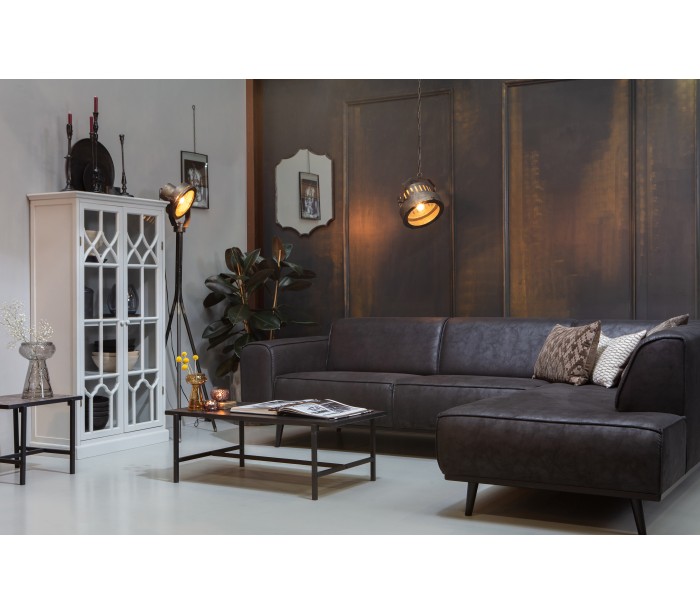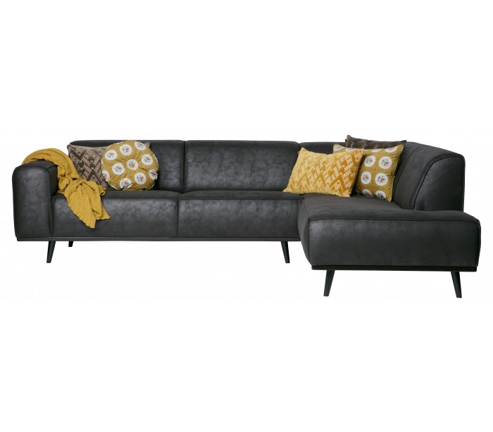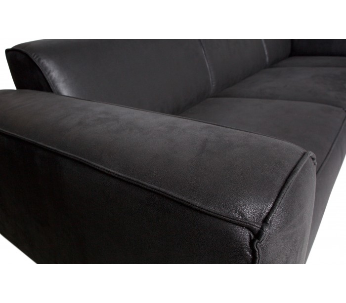 Moderne hjørnesofa i et flot udført design af vintage sort pu-læder. Sofaen måler 274 x 210 cm i bredde og dybde, og med en siddehøjde på 42 cm. Sofaen er polstret med højkvalitets skum og fjedre. Sofaen fremstår i et look af ruskind.