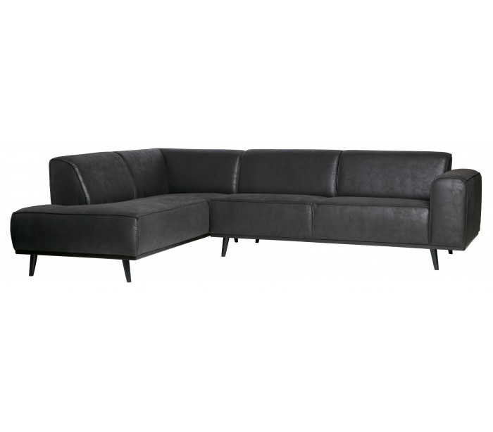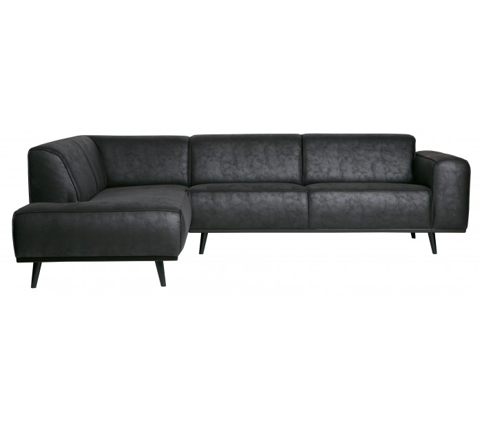 Moderne hjørnesofa i et flot udført design af vintage sort pu-læder. Sofaen måler 274 x 210 cm i bredde og dybde, og med en siddehøjde på 42 cm. Sofaen er polstret med højkvalitets skum og fjedre. Sofaen fremstår i et look af ruskind.