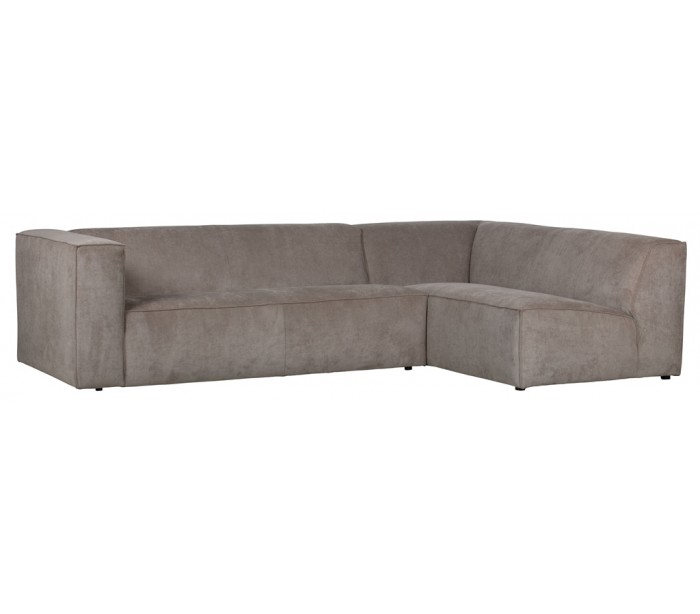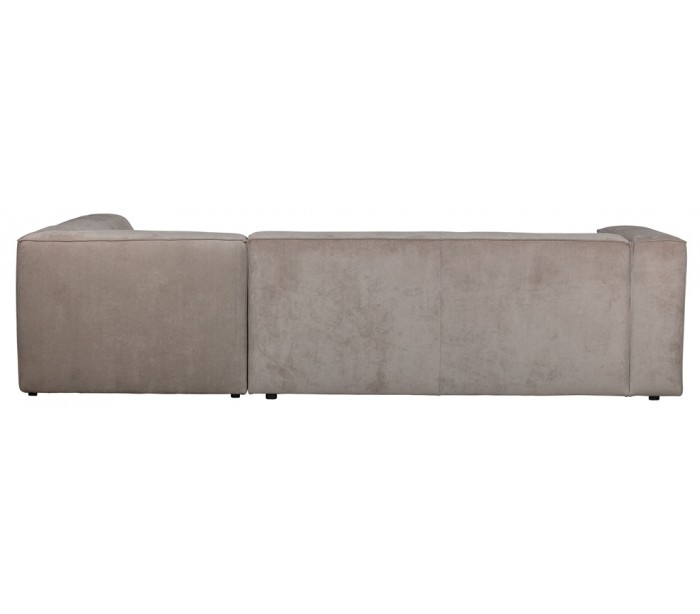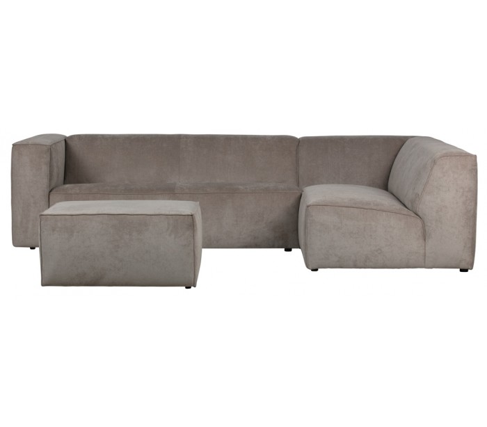 Moderne hjørnesofa med chaiselong i et flot design af khakifarvet ribcord polyester (85% Polyester/15 % Nylon) og med ben i massiv træ. Sofaen måler 284 x 183 cm. Sofaen er polstret med højkvalitets skum og bonell fjedre.