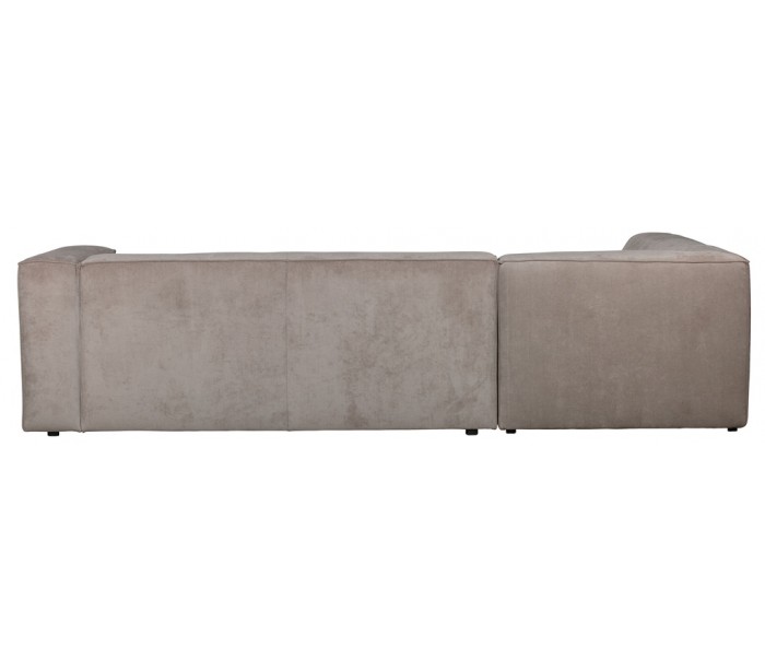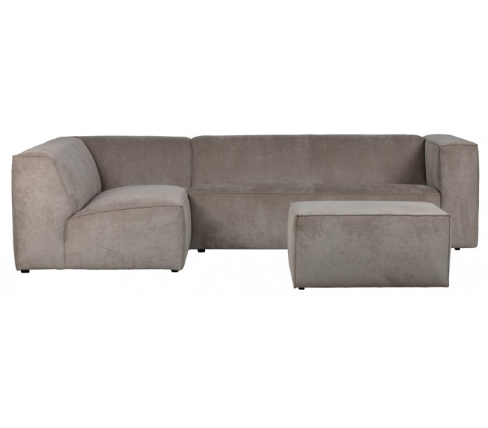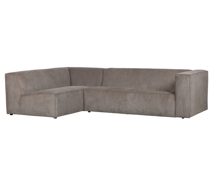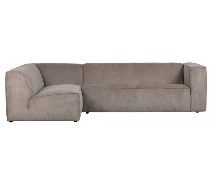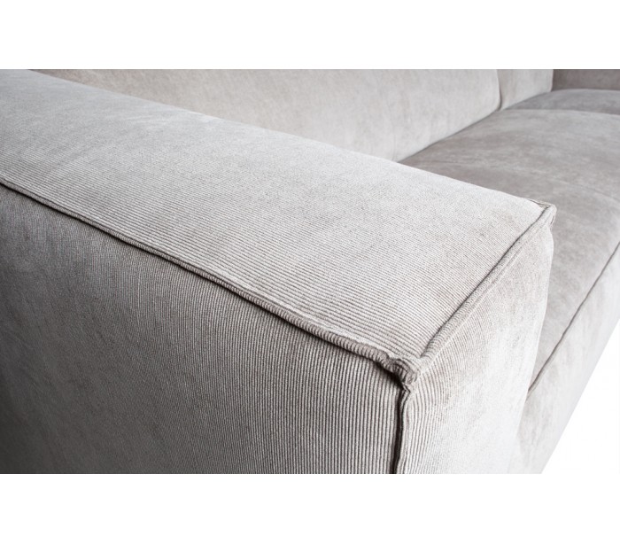 Moderne hjørnesofa med chaiselong i et flot design af khakifarvet ribcord polyester (85% Polyester/15 % Nylon) og med ben i massiv træ. Sofaen måler 284 x 183 cm. Sofaen er polstret med højkvalitets skum og bonell fjedre.