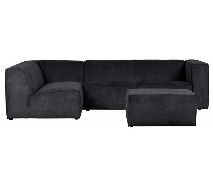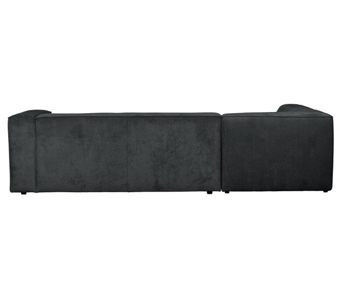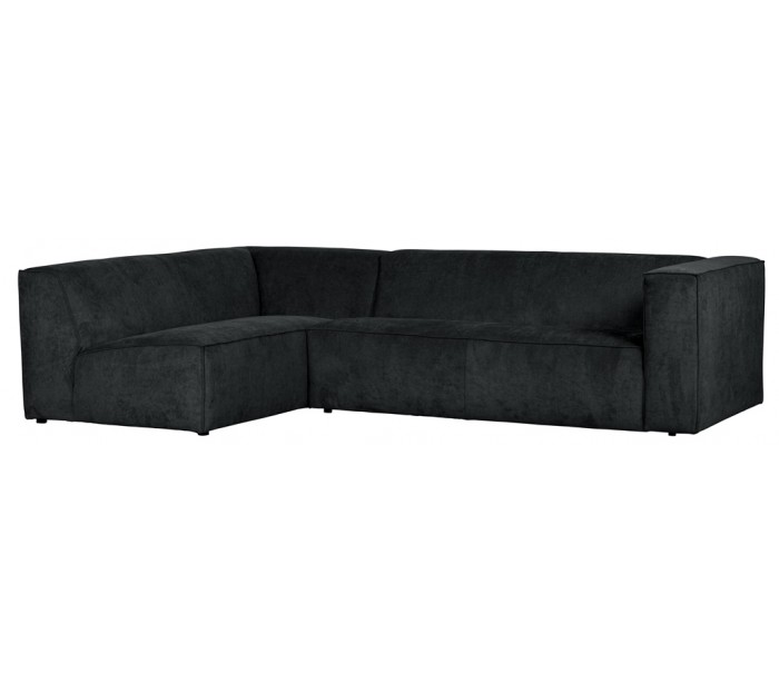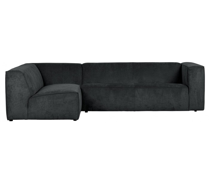 Moderne hjørnesofa med chaiselong i et flot design af antracitfarvet ribcord polyester (85% Polyester/15 % Nylon) og med ben i massiv træ. Sofaen måler 284 x 183 cm. Sofaen er polstret med højkvalitets skum og bonell fjedre.