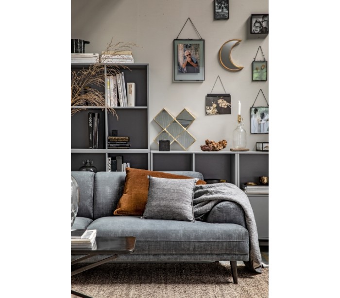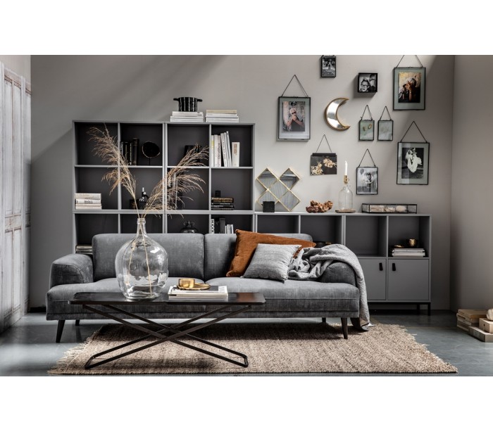 Moderne 3-personers sofa i et flot design af grå velour og med ben i massiv sortlakeret birketræ. Sofaen måler 234 x 93 cm. Sofaen er polstret med højkvalitets skum og fjedre.