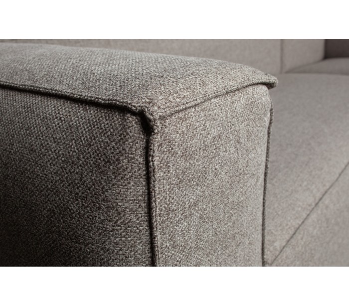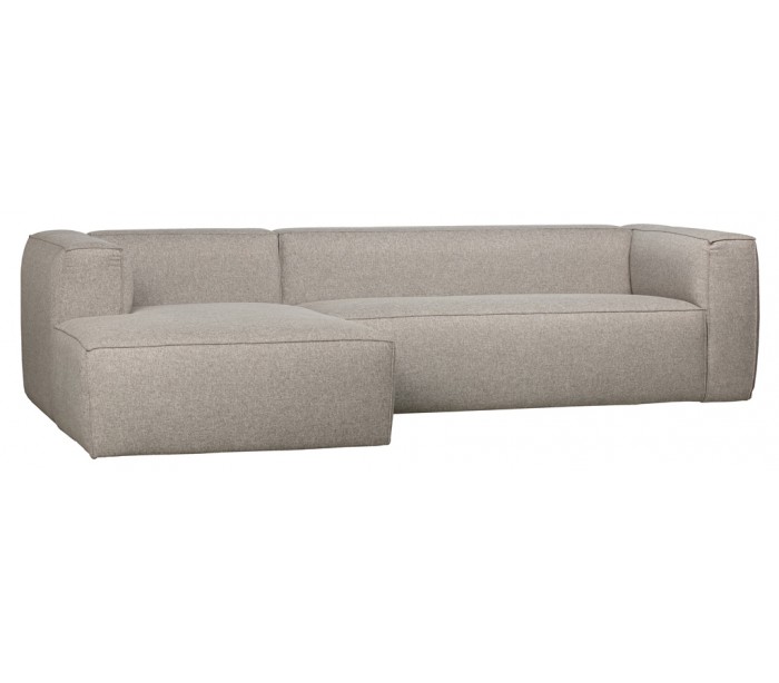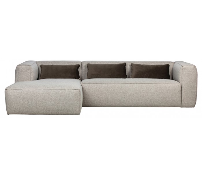 Moderne hjørnesofa med chaiselong, udført i et lækkert design af lysegrå polyester. Sofaen måler 305 x 175 cm. Sofaen er polstret med højkvalitets skum og nosag fjedre.