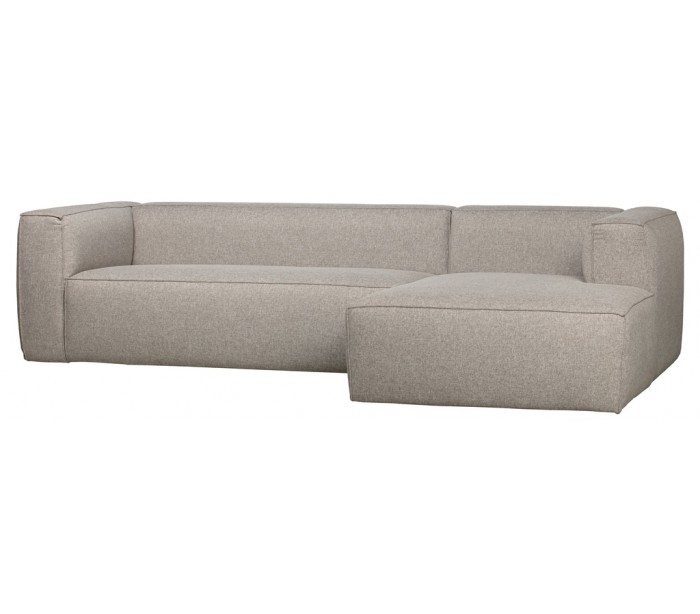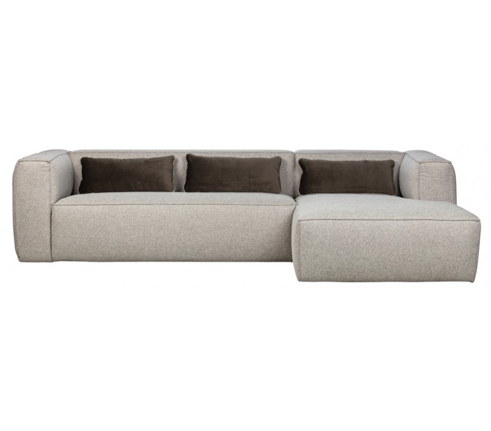 Moderne hjørnesofa med chaiselong, udført i et lækkert design af lysegrå polyester. Sofaen måler 305 x 175 cm. Sofaen er polstret med højkvalitets skum og nosag fjedre.