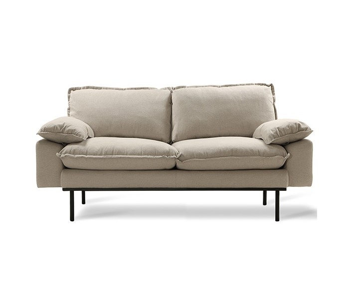 Moderne 2-personers sofa udført i et flot design af beigefarvet 61% polyester og 39% polypropylen og ben i sortlakeret metal. Sofaen måler 175 cm i bredde og 94 cm i dybde og er polstret med fjedre og højkvalitets skum.