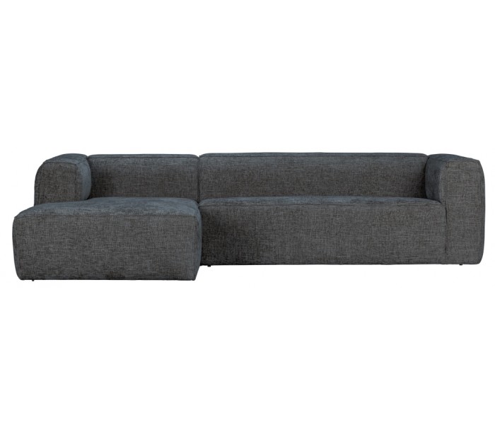 Moderne hjørnesofa med chaiselong, udført i et lækkert design af terrazzo grå polyester. Sofaen måler 305 x 175 cm. Sofaen er polstret med højkvalitets skum og nosag fjedre.