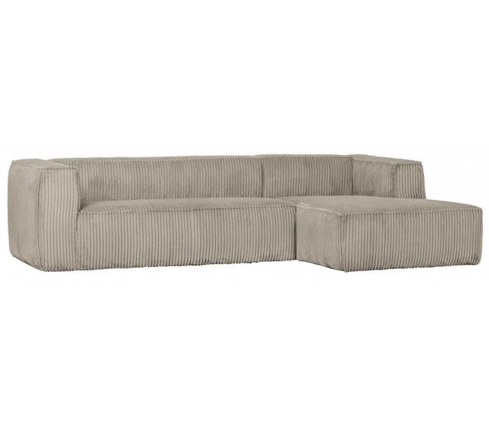 Moderne hjørnesofa med chaiselong, udført i et lækkert design af naturfarvet polyester. Sofaen måler 305 x 175 cm. Sofaen er polstret med højkvalitets skum og nosag fjedre.
