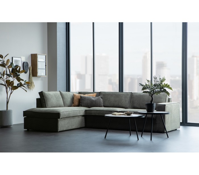 Freddie sofa med chaiselong i tekstil 283 x 197 cm - Varm grøn