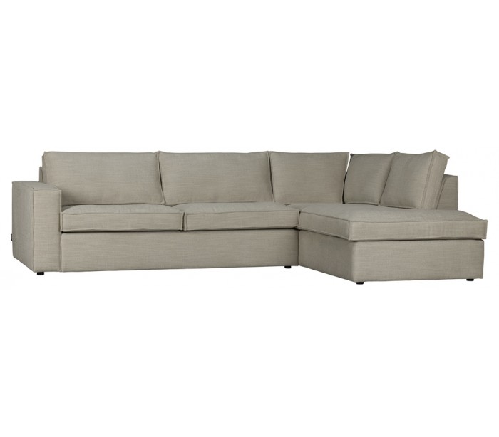 Freddie sofa med chaiselong, udført i et slidstærkt design af naturfarvet polyester (90%) og polyakryl (10%). Sofaen måler 283 x 197 cm. Sofaen er polstret med højkvalitets skum og fjedre.