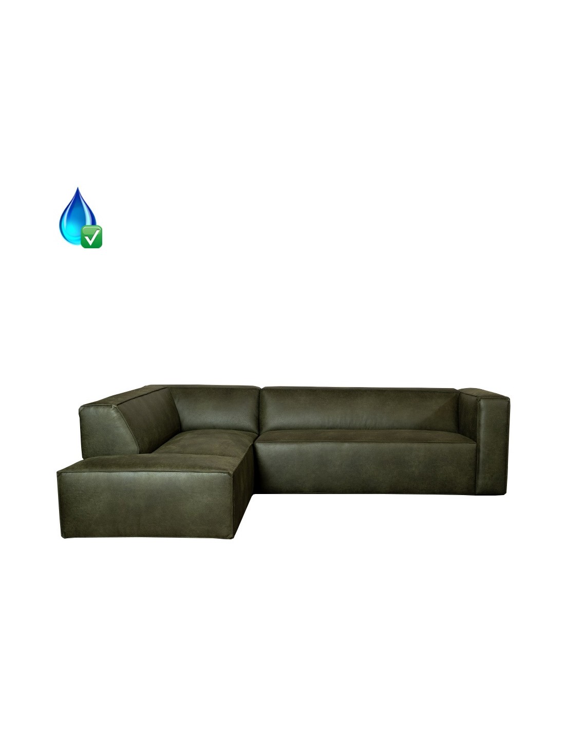 Memphis venstrevendt hjørnesofa i økolæder 260 x 200 cm - Vintage armygrøn
