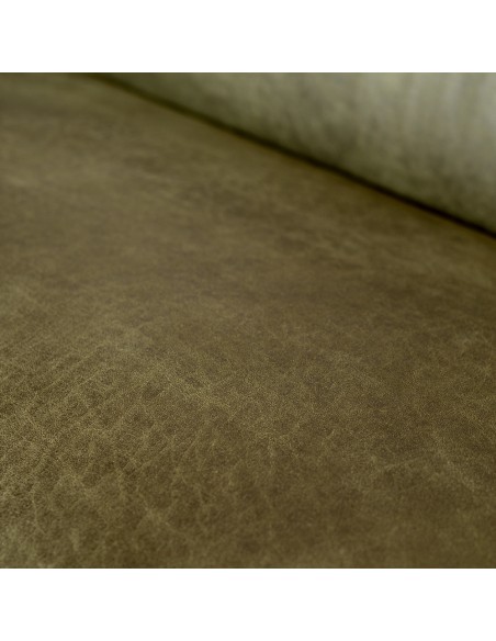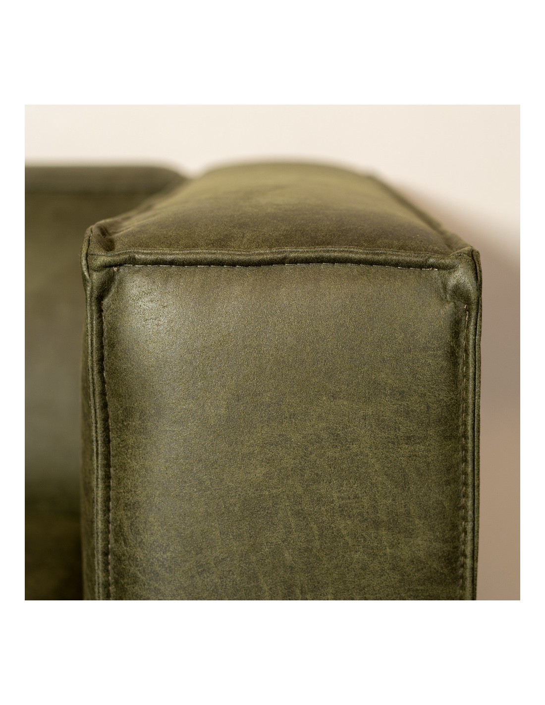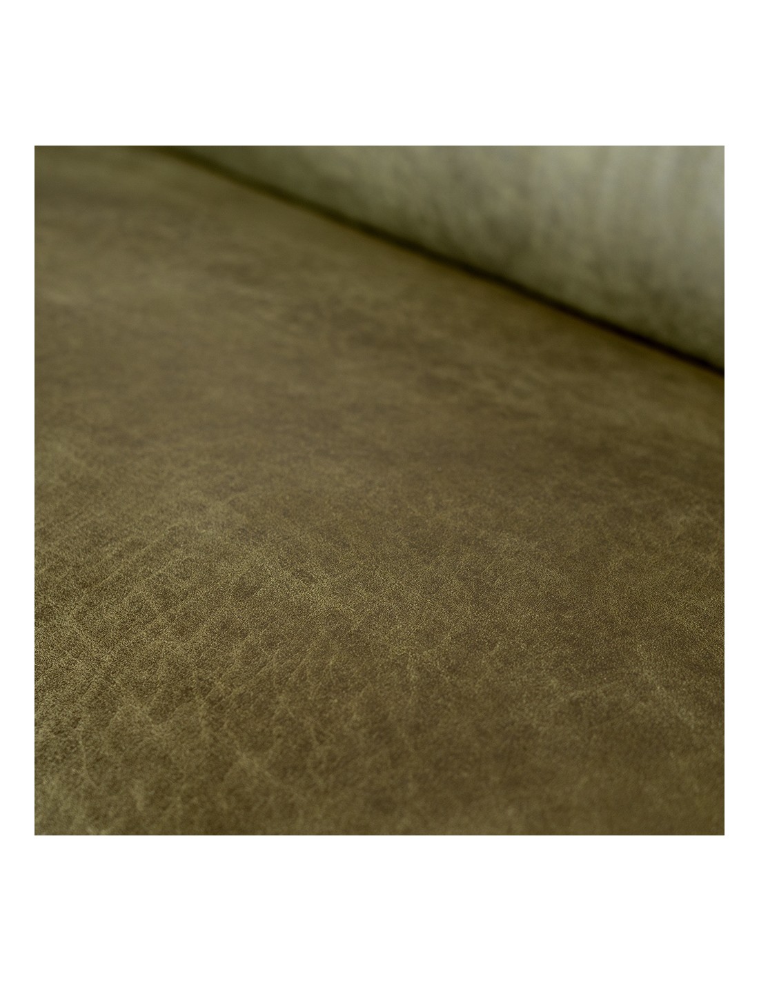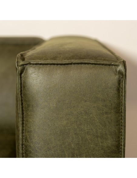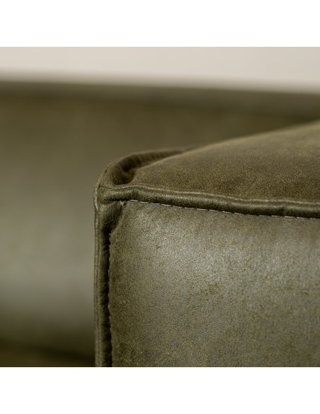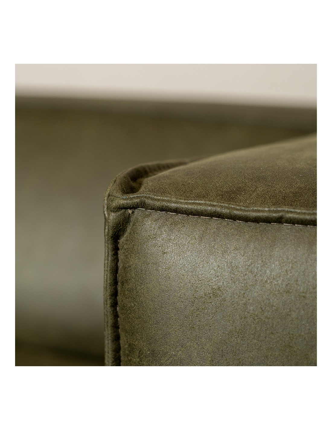 Moderne hjørnesofa med chaiselong, udført i et lækkert design af økolæder (70% læder/30% polyester) i vintage armygrøn. Sofaen måler 260 x 200 cm. Sofaen er polstret med højkvalitets skum og er vandafvisende.