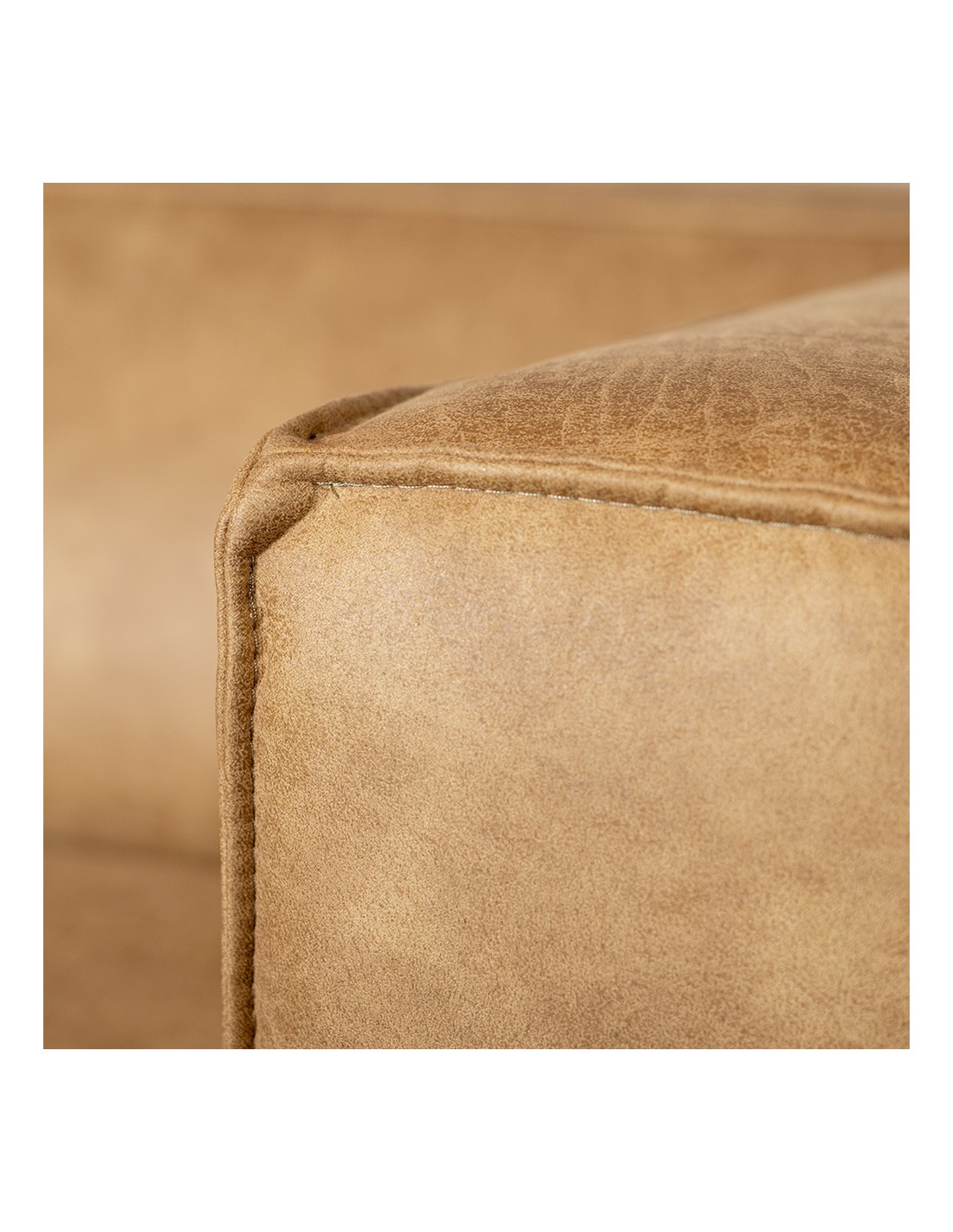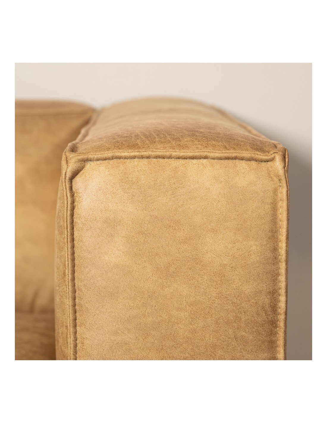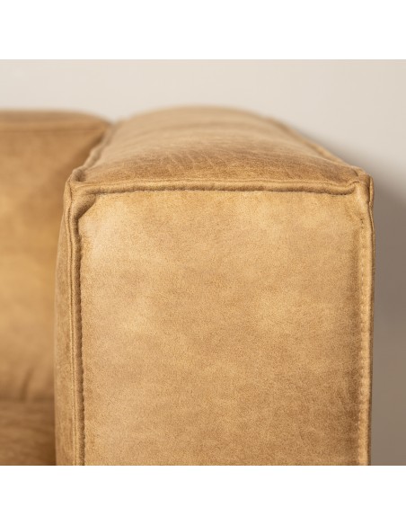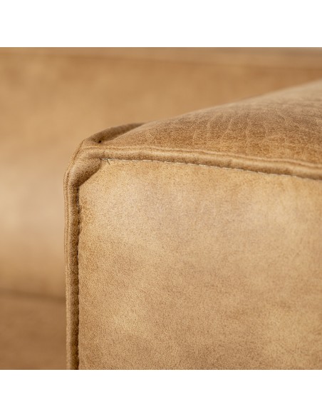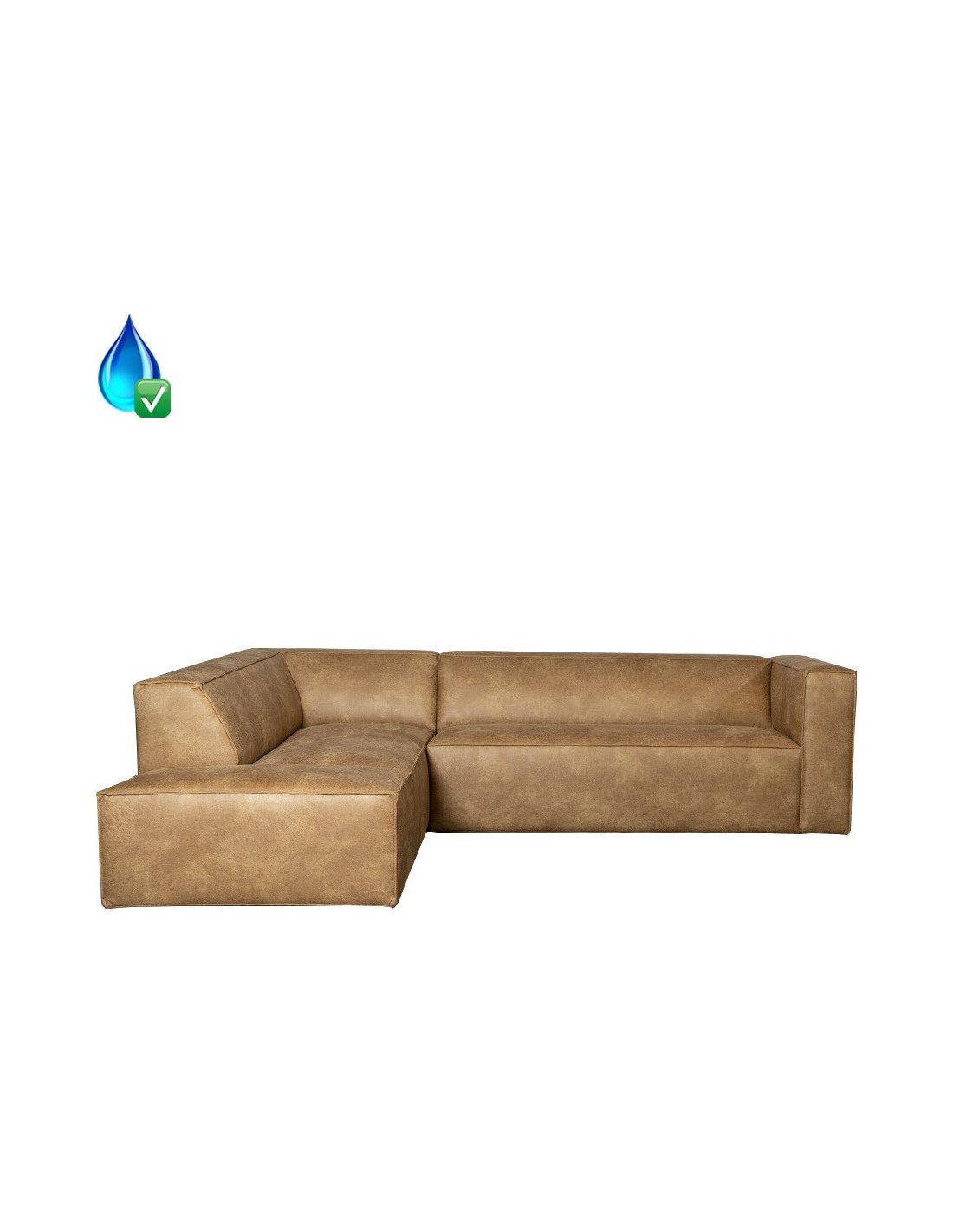 Moderne hjørnesofa med chaiselong, udført i et lækkert design af økolæder (70% læder/30% polyester) i vintage beige. Sofaen måler 260 x 200 cm. Sofaen er polstret med højkvalitets skum og er vandafvisende.