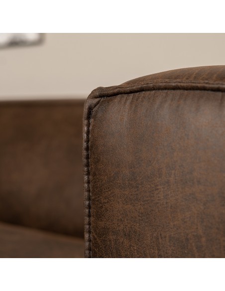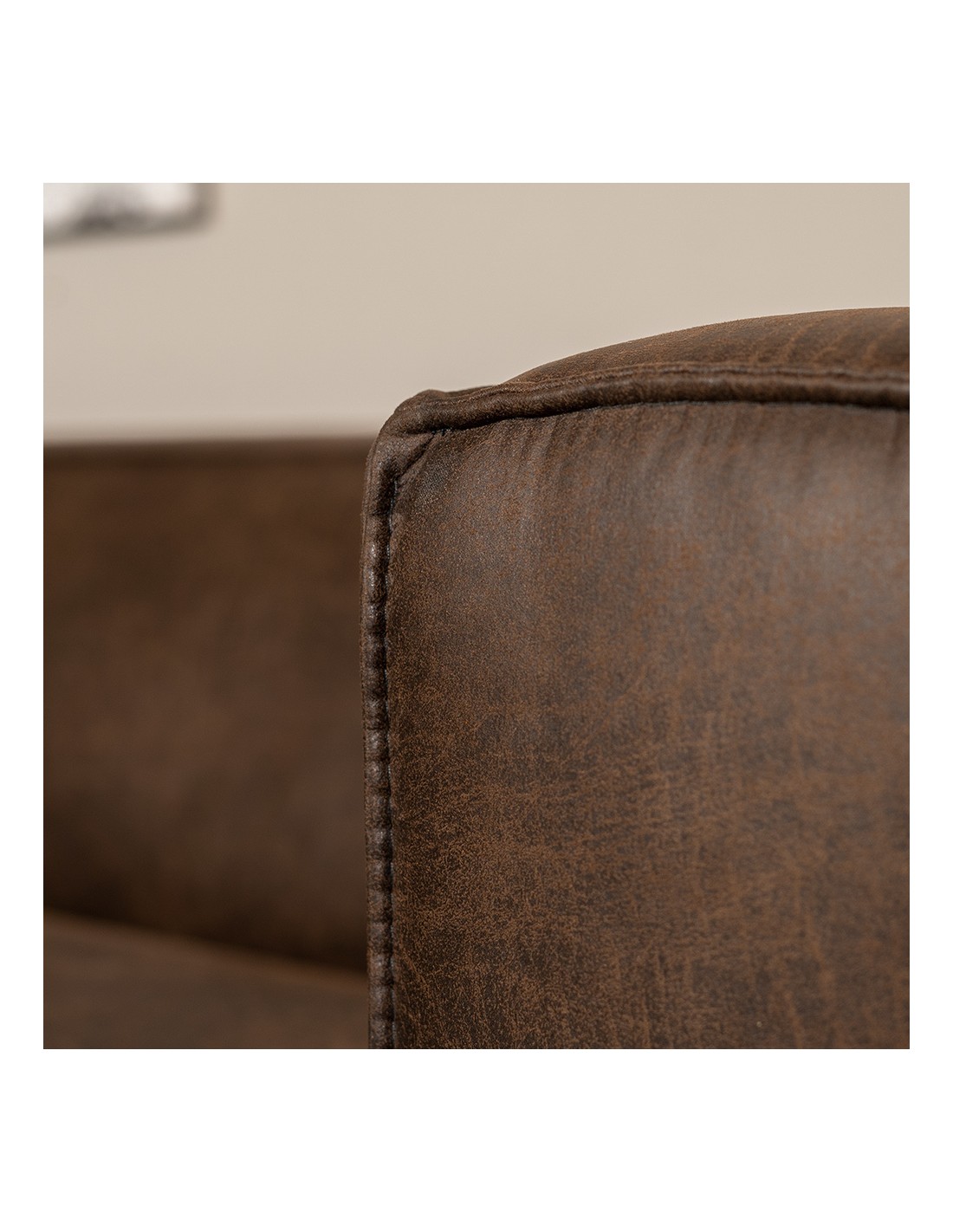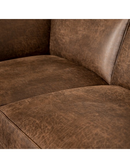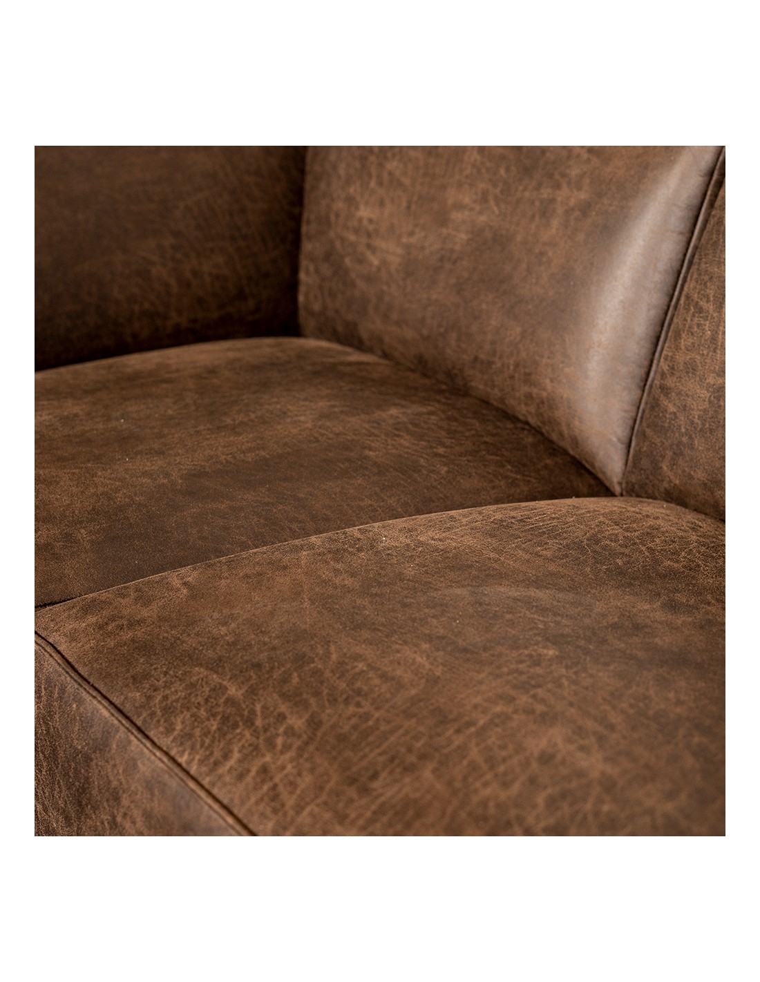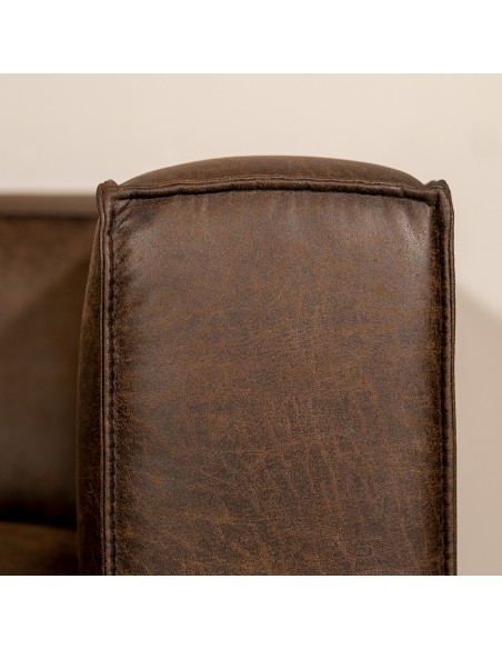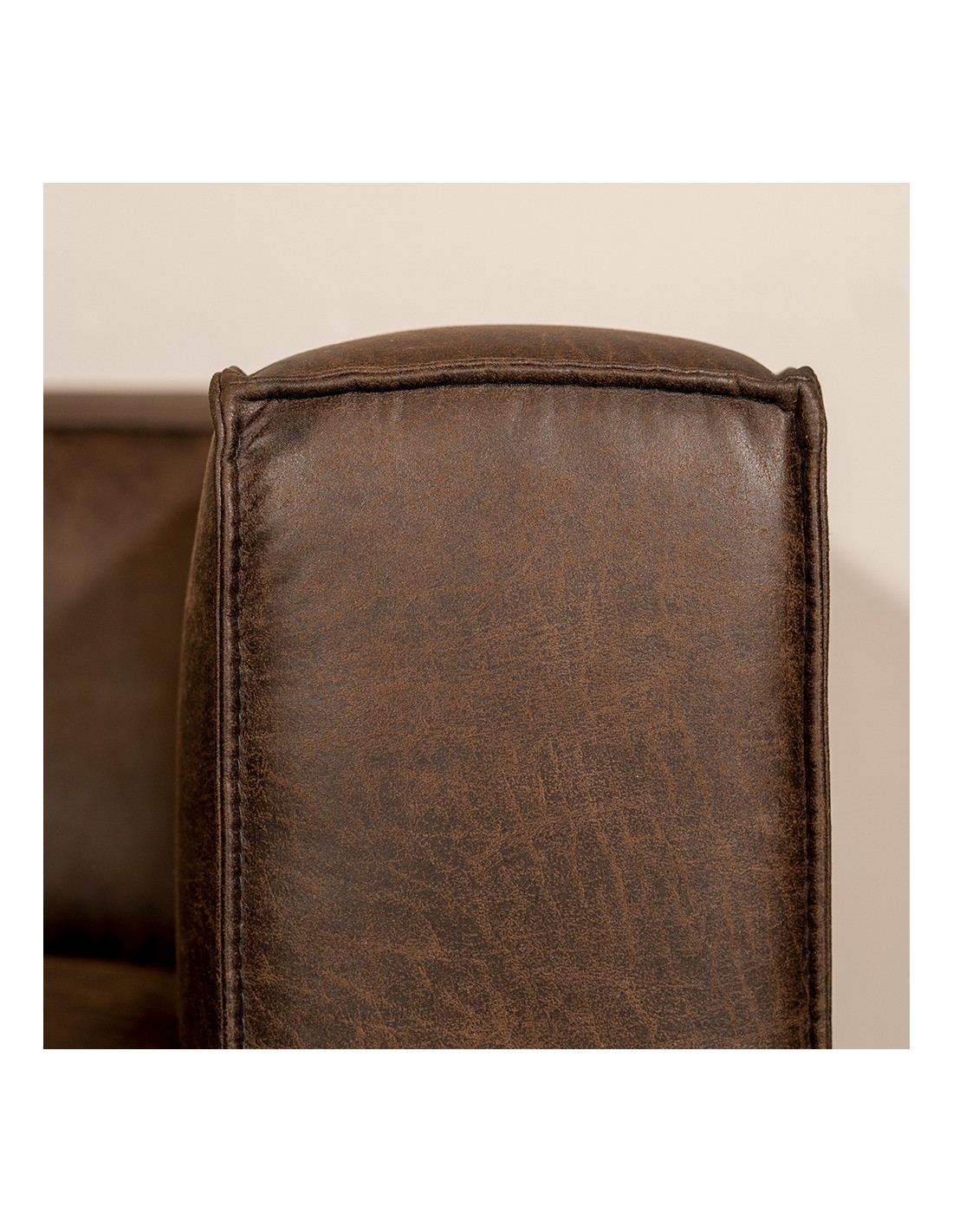 Moderne hjørnesofa med chaiselong, udført i et lækkert design af økolæder (70% læder/30% polyester) i vintage brun. Sofaen måler 260 x 200 cm. Sofaen er polstret med højkvalitets skum og er vandafvisende.