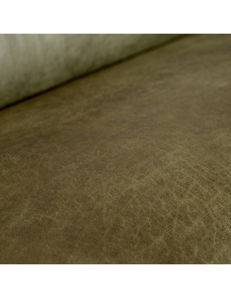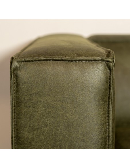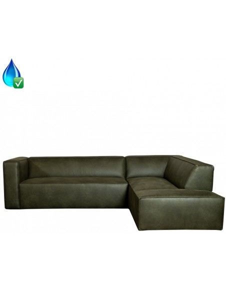 Moderne hjørnesofa med chaiselong, udført i et lækkert design af økolæder (70% læder/30% polyester) i vintage armygrøn. Sofaen måler 260 x 200 cm. Sofaen er polstret med højkvalitets skum og er vandafvisende.