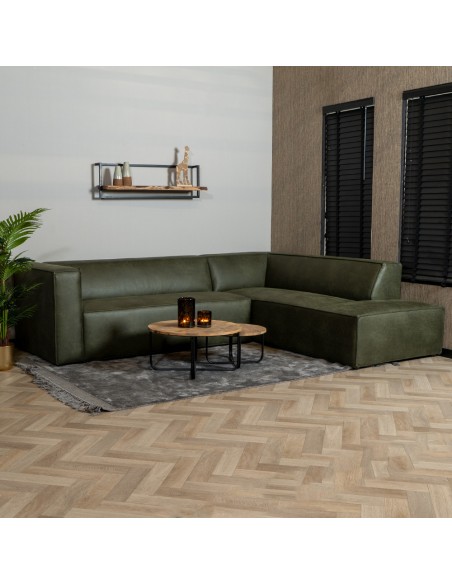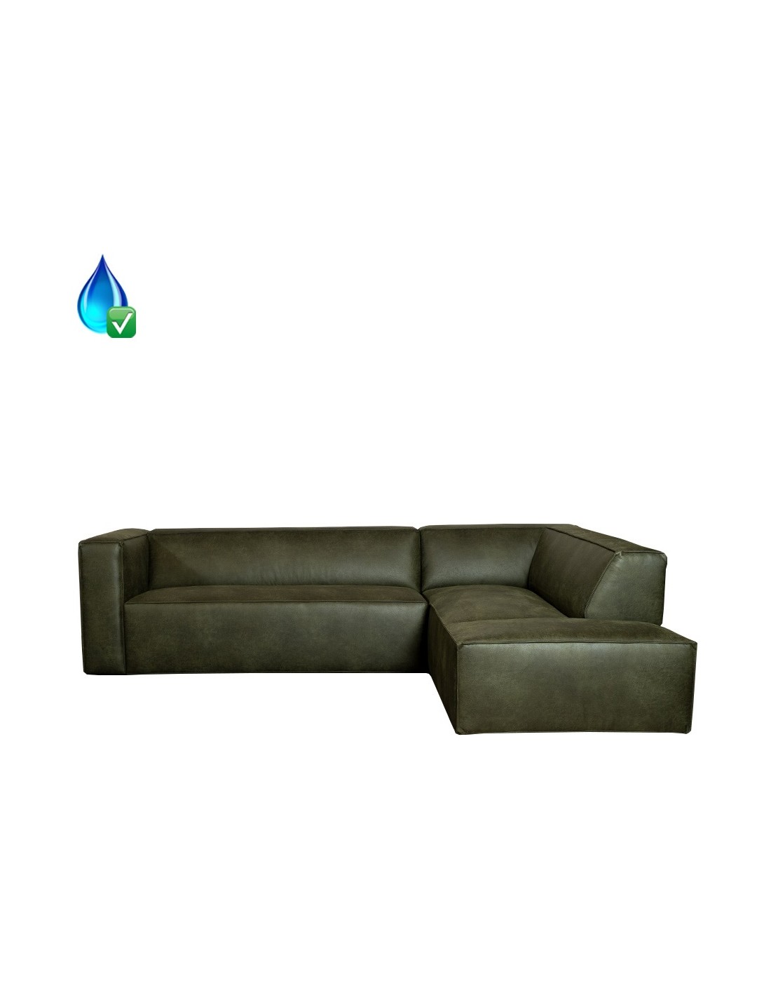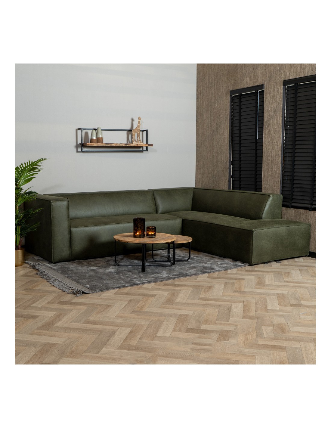Memphis højrevendt hjørnesofa i økolæder 260 x 200 cm - Vintage armygrøn