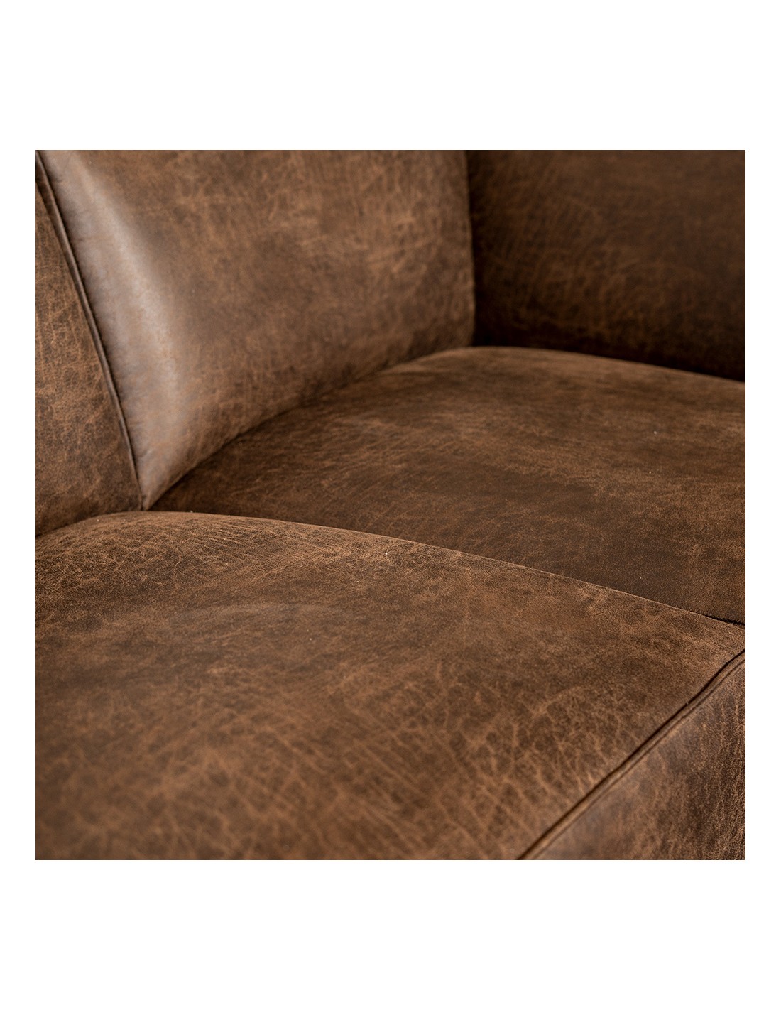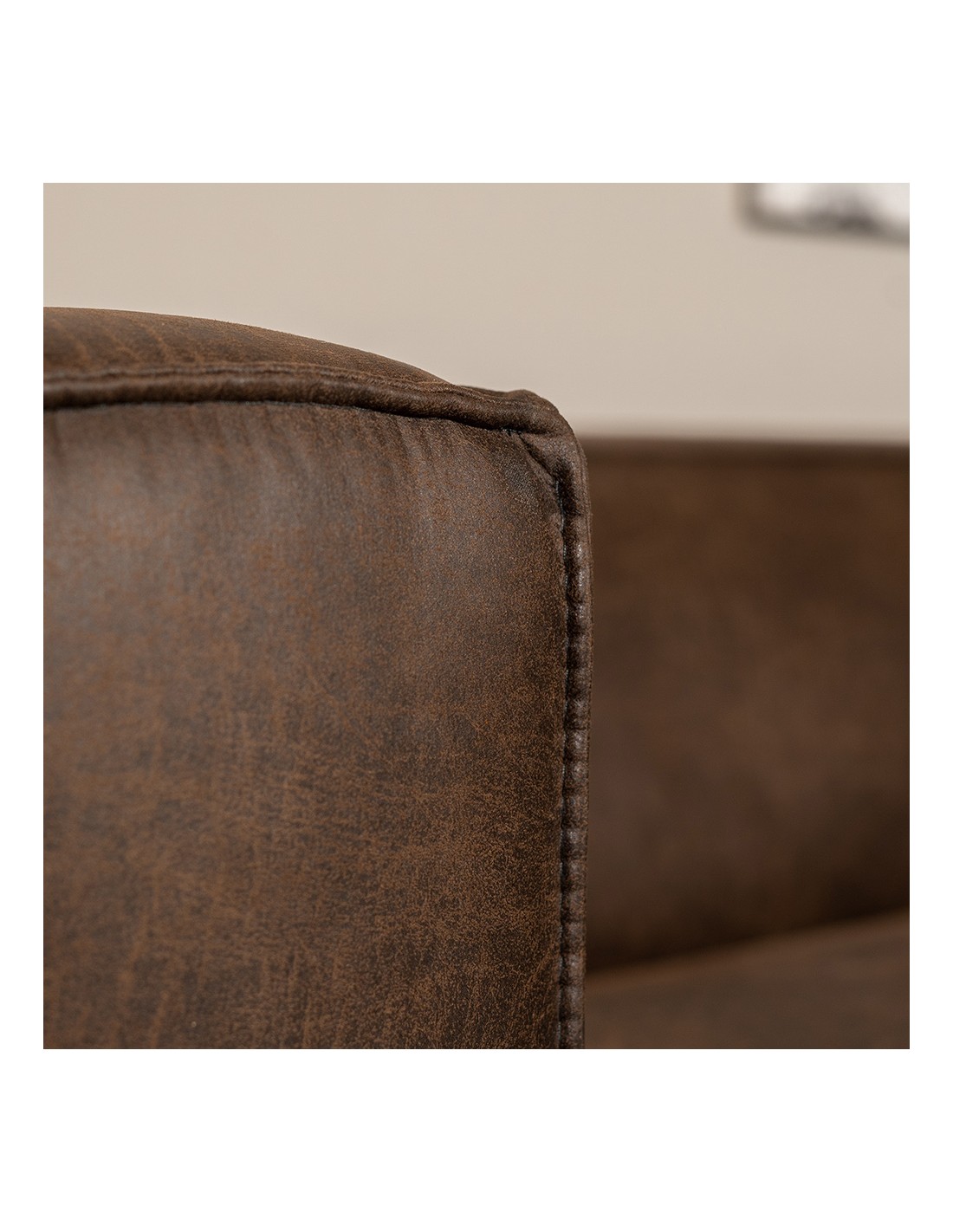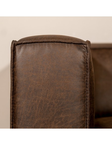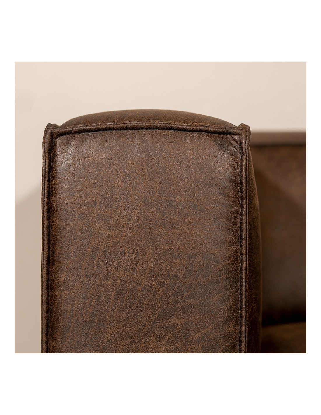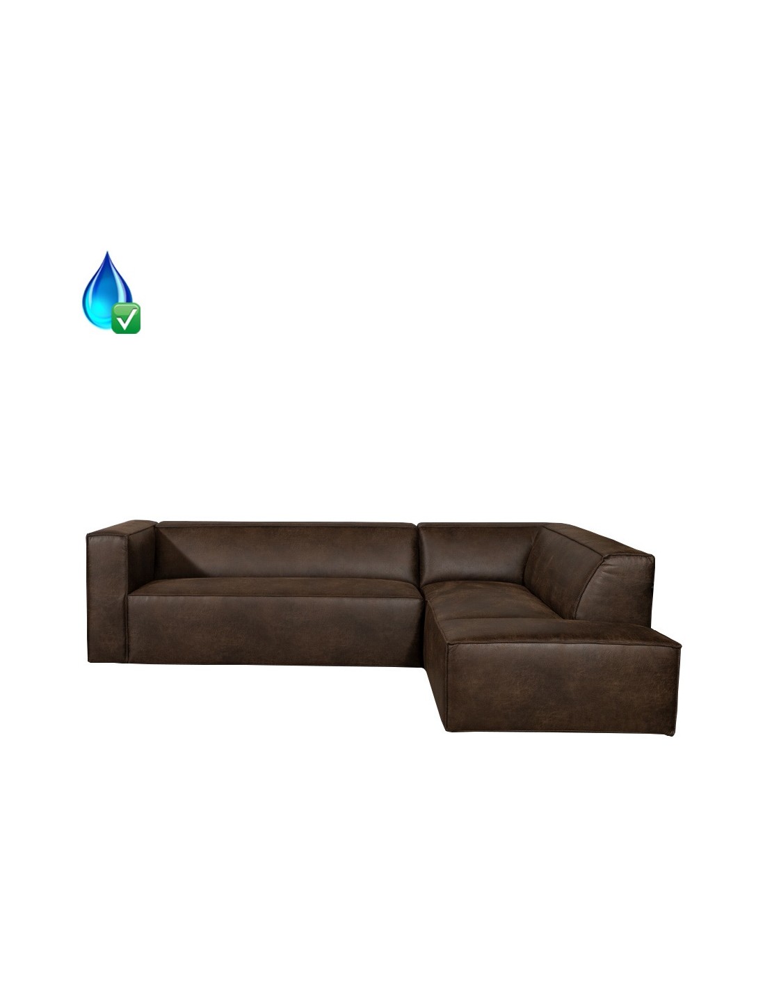 Moderne hjørnesofa med chaiselong, udført i et lækkert design af økolæder (70% læder/30% polyester) i vintage brun. Sofaen måler 260 x 200 cm. Sofaen er polstret med højkvalitets skum og er vandafvisende.