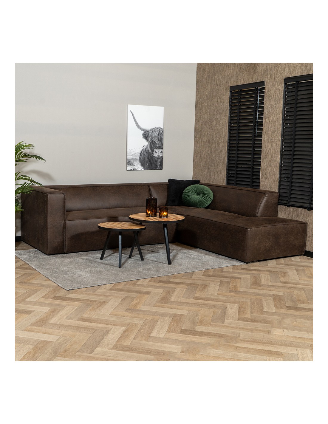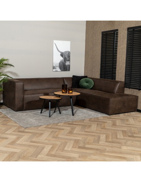 Memphis højrevendt hjørnesofa i økolæder 260 x 200 cm - Vintage brun