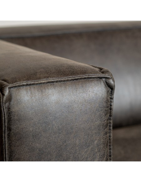 Moderne hjørnesofa med chaiselong, udført i et lækkert design af økolæder (70% læder/30% polyester) i vintage antracit. Sofaen måler 260 x 200 cm. Sofaen er polstret med højkvalitets skum og er vandafvisende.