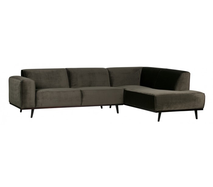 Moderne hjørnesofa i et flot udført design af varmt grønt velour. Sofaen måler 274 x 210 cm i bredde og dybde, og med en siddehøjde på 42 cm. Sofaen er polstret med højkvalitets skum og fjedre.