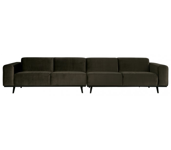Moderne 4-personers sofa i et flot udført design af varmt grønt velour. Sofaen måler 372 cm i længden og med en siddehøjde på 42 cm. Sofaen er polstret med højkvalitets skum og fjedre.