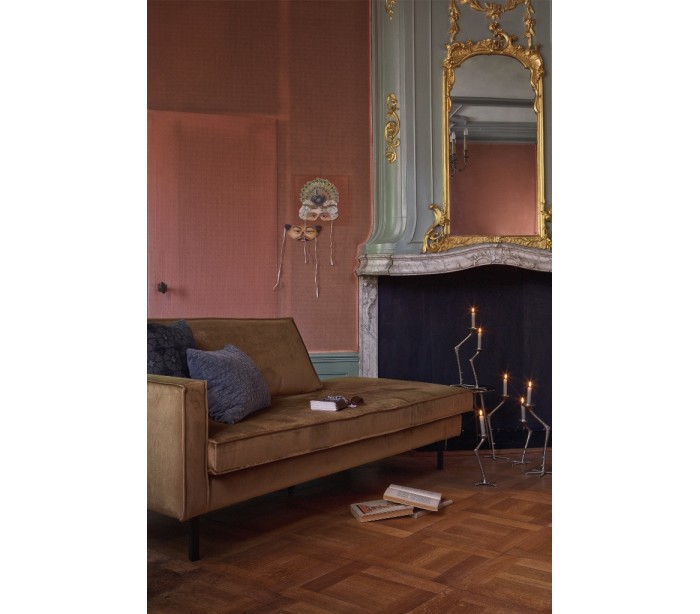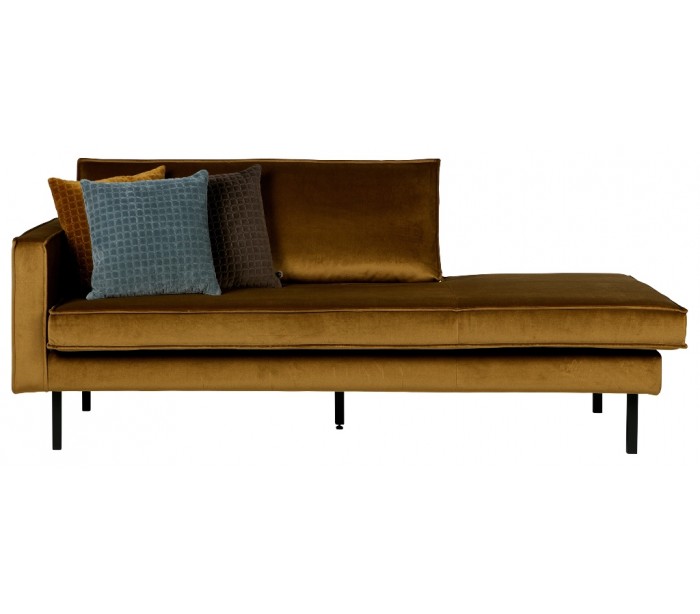 Moderne daybed sofa udført i et flot design af honninggult velour. Sofaen måler 206 cm i bredden og er polstret med højkvalitets skum.