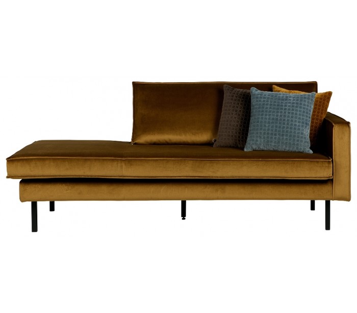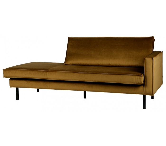Moderne daybed sofa udført i et flot design af honninggult velour. Sofaen måler 206 cm i bredden og er polstret med højkvalitets skum.