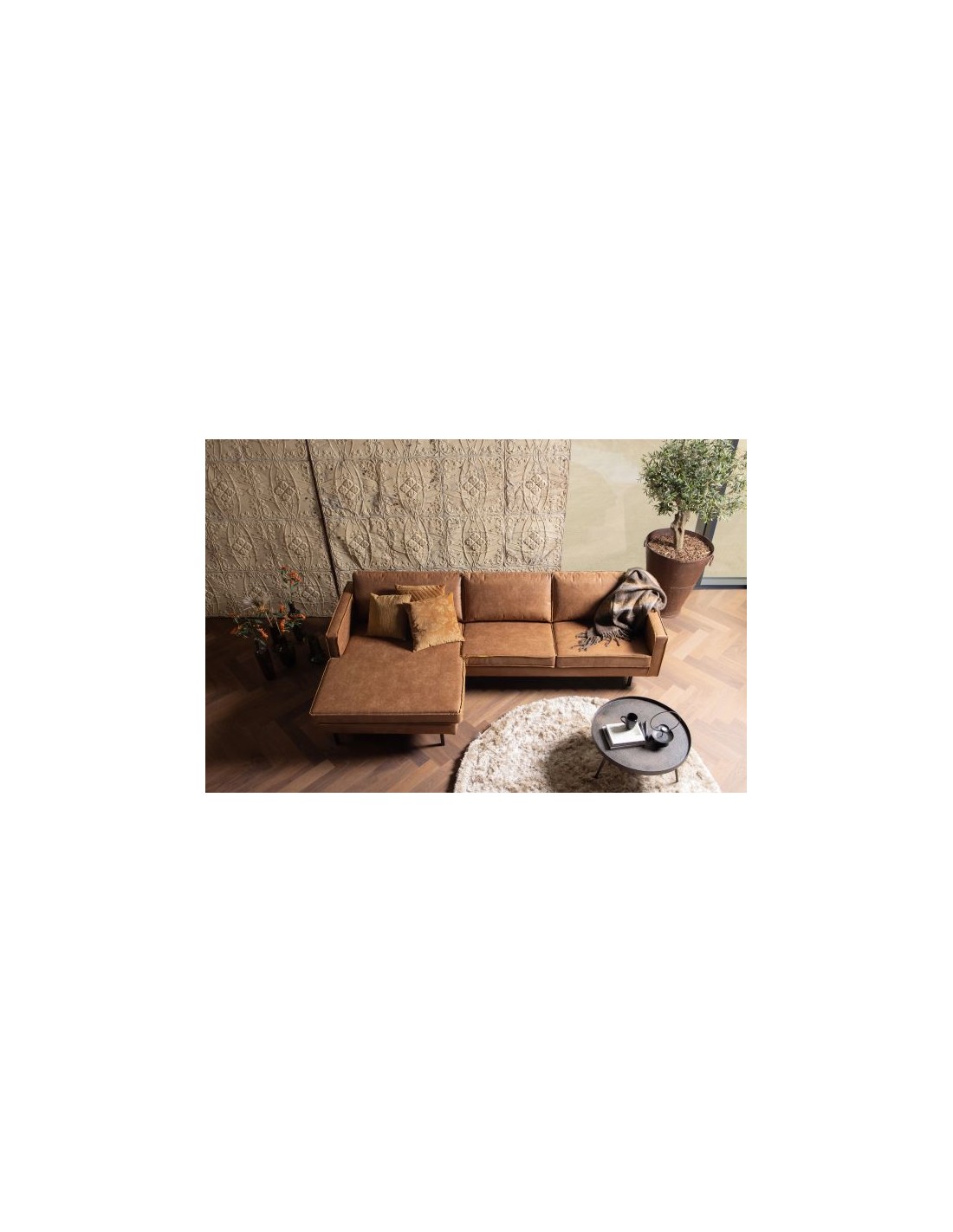 Rodeo Sofa med venstrevendt chaiselong i læder B300 cm - Vintage cognac
